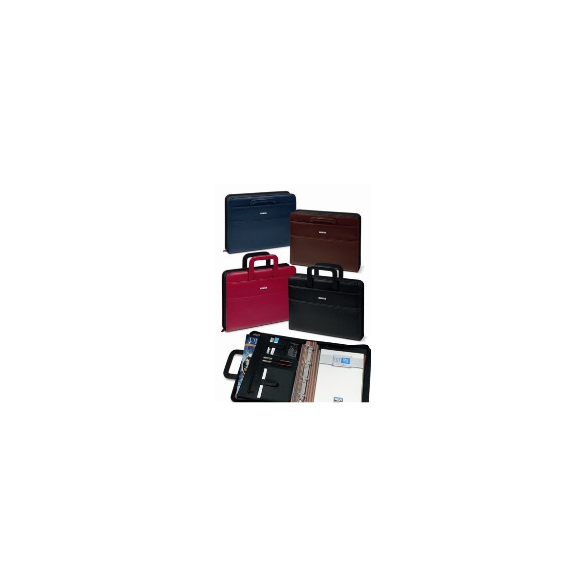 CARTELLA PORTABLOCCO "PROFESSIONAL" IN SIMILPELLE MORBIDO COLORATO, CON CERNIERA, MANICI RIENTRANTI, INTERNO IN TESSUTO A RIGHE CON VARIE TASCHE, ANELLI METALLICI DIAM.3,5 CM. COMPLETO DI BLOCCO, DIM.CM.36X28,5X6.