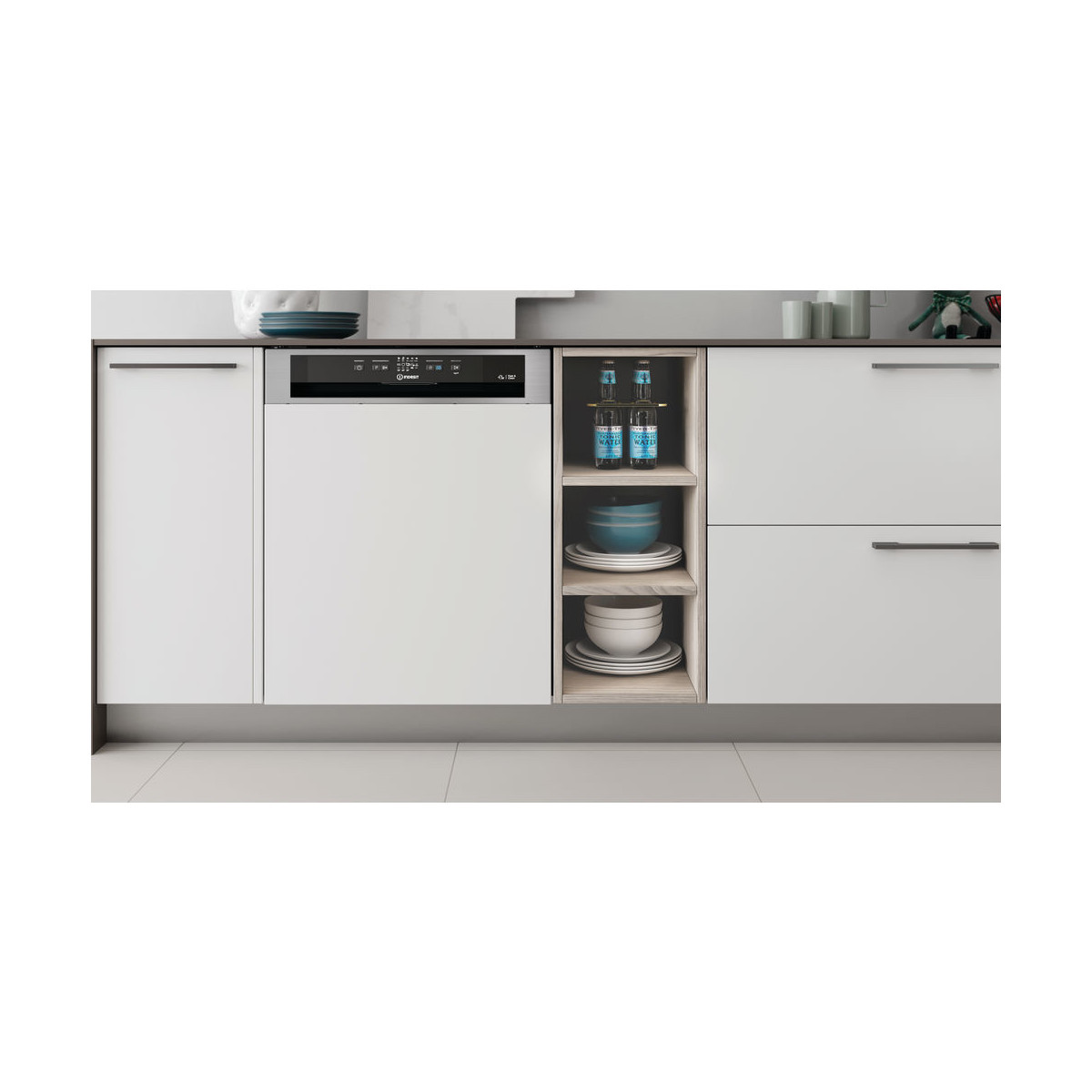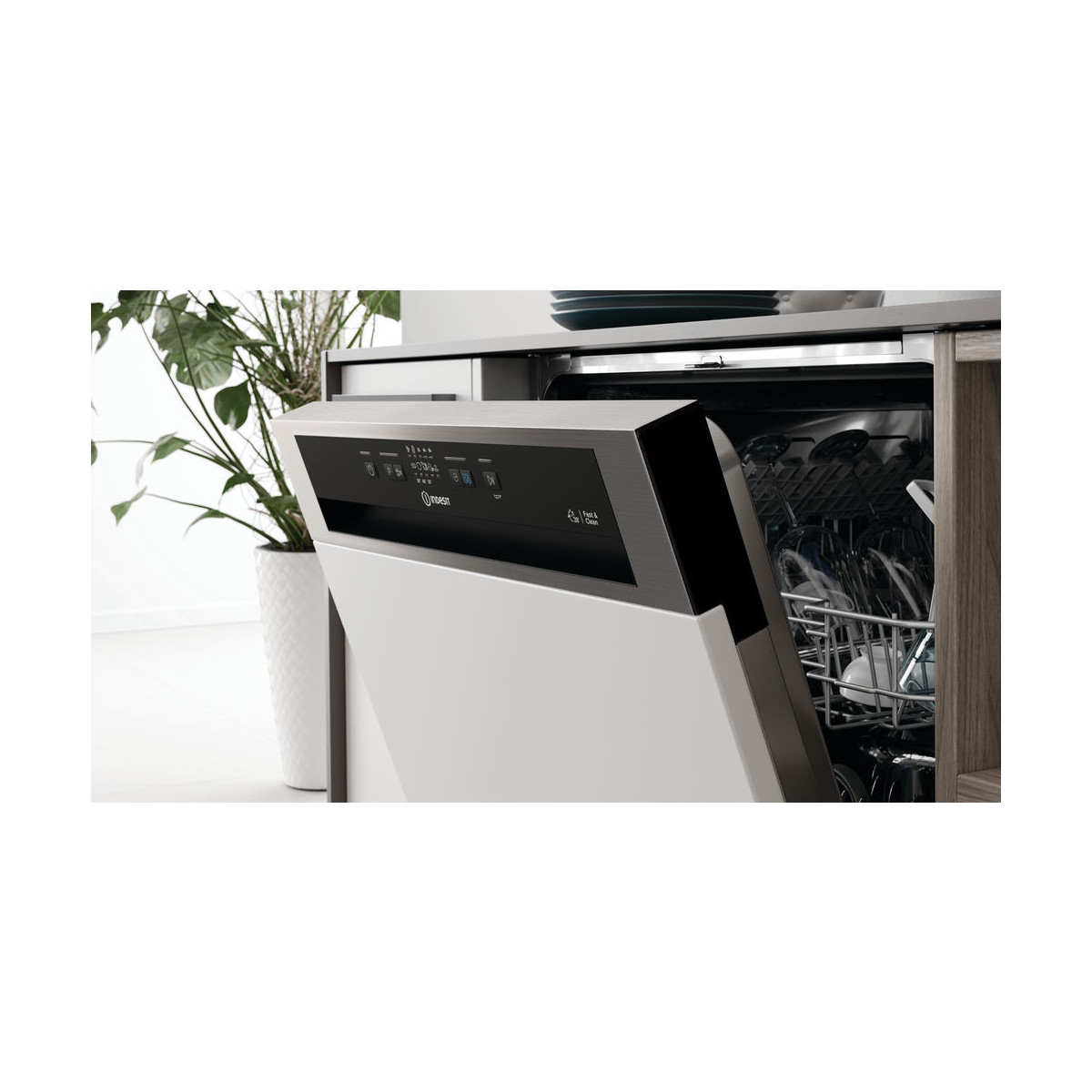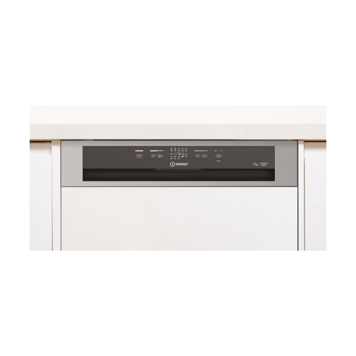 Caratteristiche di questa lavastoviglie semi incasso Indesit: lavastoviglie a grande capienza con un gran numero di coperti disponibile. Classe di efficienza energetica F (A+). Consumo d'acqua ridotto. Color inox. Piedini regolabili in altezza per una stabilità perfetta su ogni superficie.