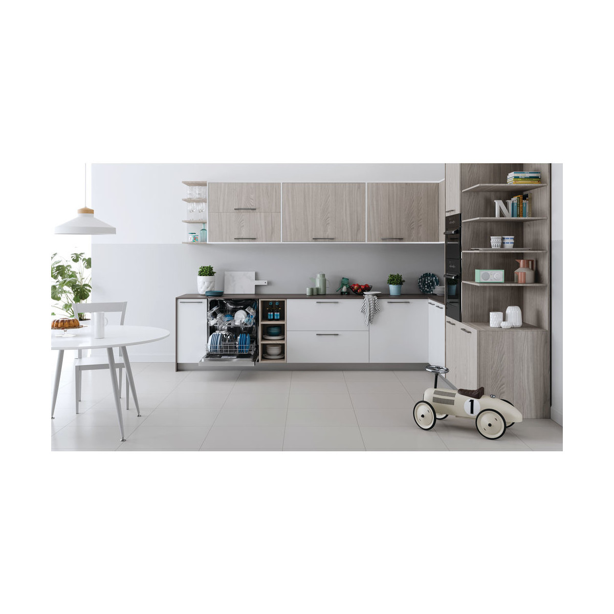 La Partenza ritardata consente di programmare i cicli di lavaggio durante la giornata. Basta aggiungere il detersivo e lasciare che sia la tua lavastoviglie Indesit a fare il resto.