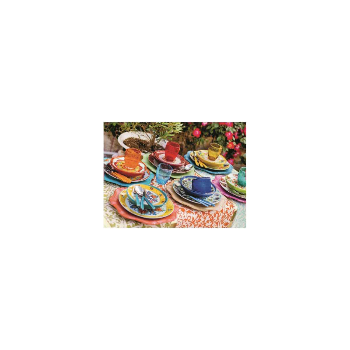 La superficie smaltata esalta le cromie della tavola.