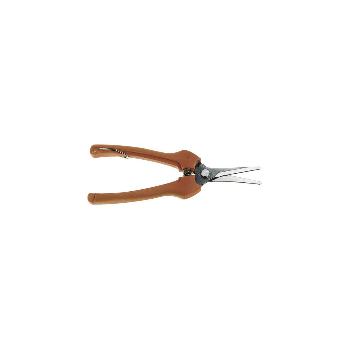 Forbice cogliuva a lame diritte per la raccolta e la floricoltura, particolarmente indicato per lo sfoltimento dei frutti. Apertura mm.35, manici in materiale sintetico rinforzato con fibra di vetro. Fornito con fodero.