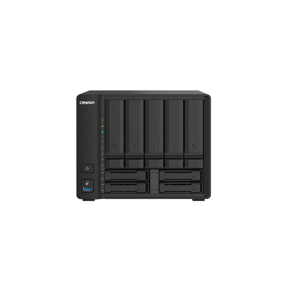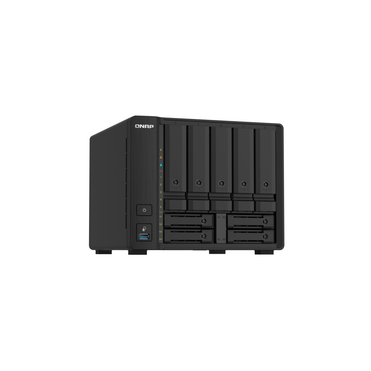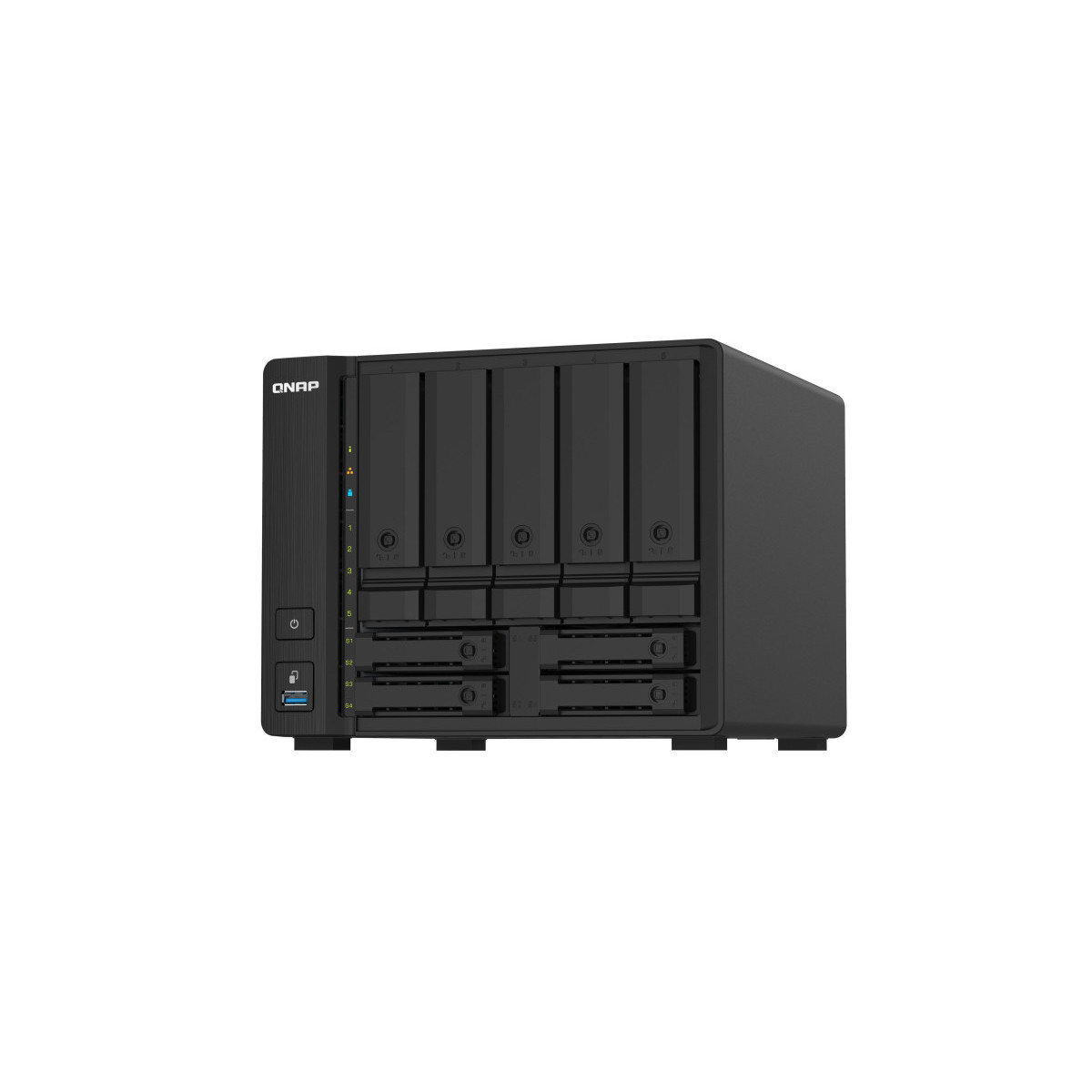 Il TS-932PX quad-core 1,7GHz alloggia nove unità baie nelle dimensioni di un NAS a 5 baie. Grazie a 5 unità baie SATA 6Gb/s da 3,5” e quattro baie SATA 6Gb/s da 2,5”, il TS-932PX offre la possibilità di creare una infrastruttura HDD/SSD ibrida per migliorare le prestazioni delle applicazioni. Con due porte LAN 10GbE SFP+ e due 2,5GbE, il TS-932PX supporta le reti di prossima generazione per potenziare le applicazioni con elevata richiesta di banda ed offrire l’accesso e la condivisione dei file più fluida.