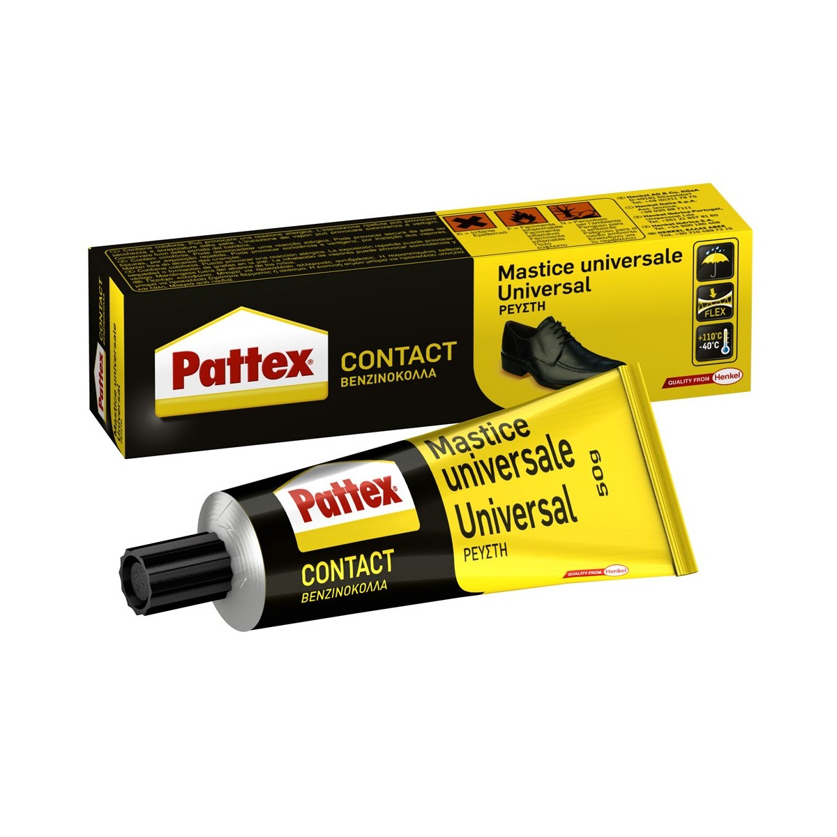 H. PATTEX SUPERCHIARO. Adesivo a contatto universale ideale per l'incollaggio di gomma, cuoi, moquette, feltro, sughero. Indicato inoltre per incollare laminati in legno o derivati.