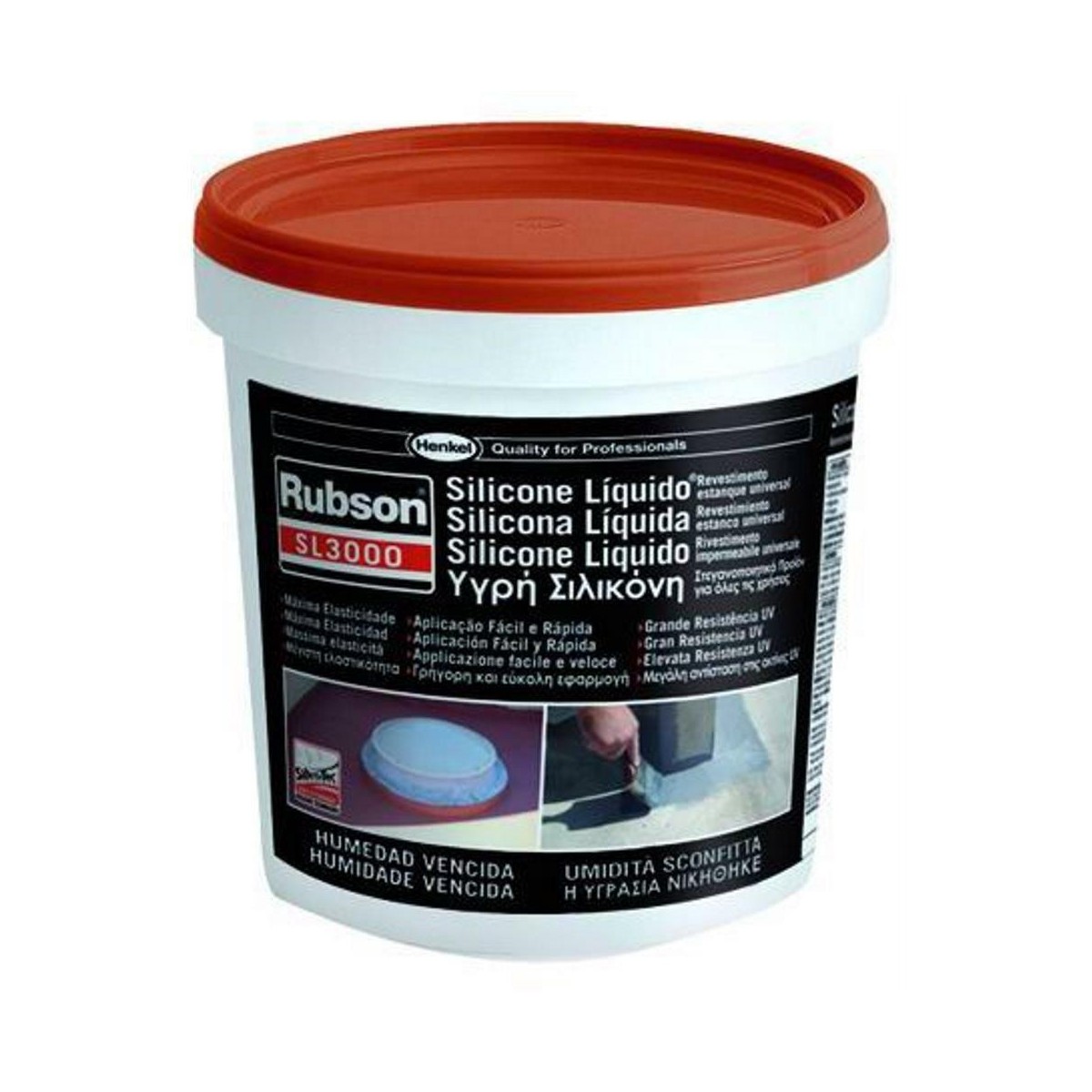 Rubson silicone liquido sl-3000. Rivestimento impermeabile universale chesi basa sulla tecnologia Silicotec. Prodotto pronto all'uso base acqua, facile e sicuro da usare. Ideale per l'impermeabilizzazione e la riparazione di tetti e coperture sia piani che inclinati, guaine, fioriere, vasche di raccolta, giunti di grondaie e lucernari.