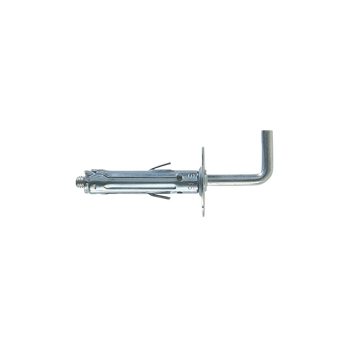 Tassello Fischer metallo SBS 9/6. Diametro 9 mm. Ideale per fissaggi leggeri. Alette laterali che ne impediscono la rotazione. Adatto per calcestruzzo e altri materiali compatti. Con gancio lungo. Zincato.