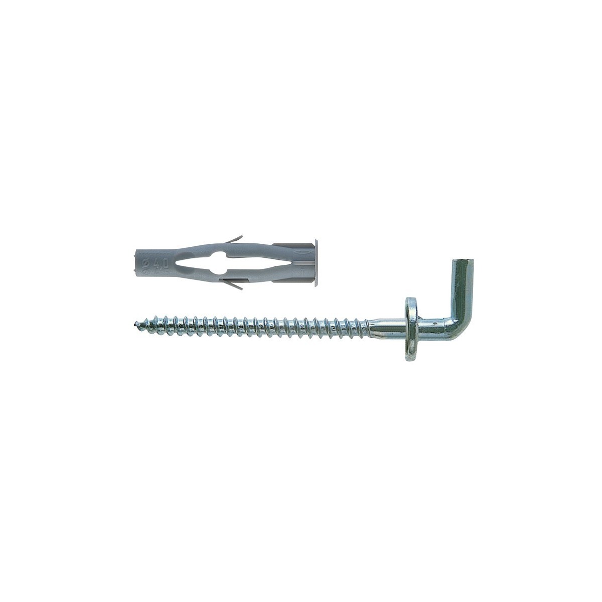 Tassello Fischer nylon FU-H. Fornito con gancio a "L" zinco cromato con collare. Adatto per fissaggi in intercapedini dei materiali vuoti grazie alla retro flessione della parte centrale del tassello.