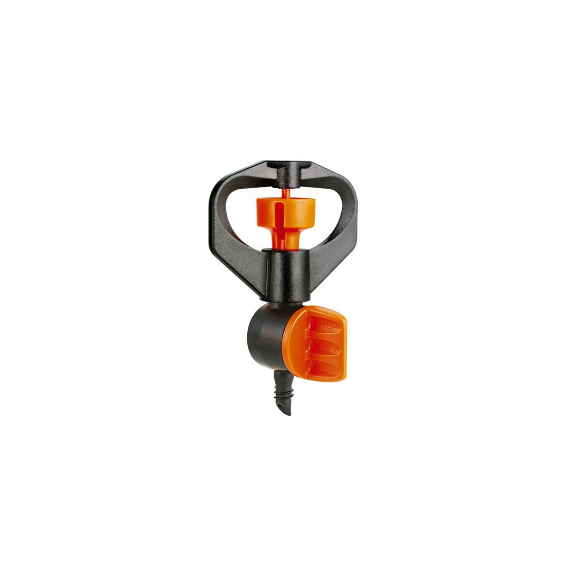 Claber 91250 Microirrigatore 360 regolabile. Si applica sul tubo collettore da 1/2 (13-16 mm9, sul capillare da 1/4 ( 4- 6 mm) o sulle astine. Per irrigare superfici circolari. Con rubinetto di regolazione e chiusura. Blister da 5 pz.