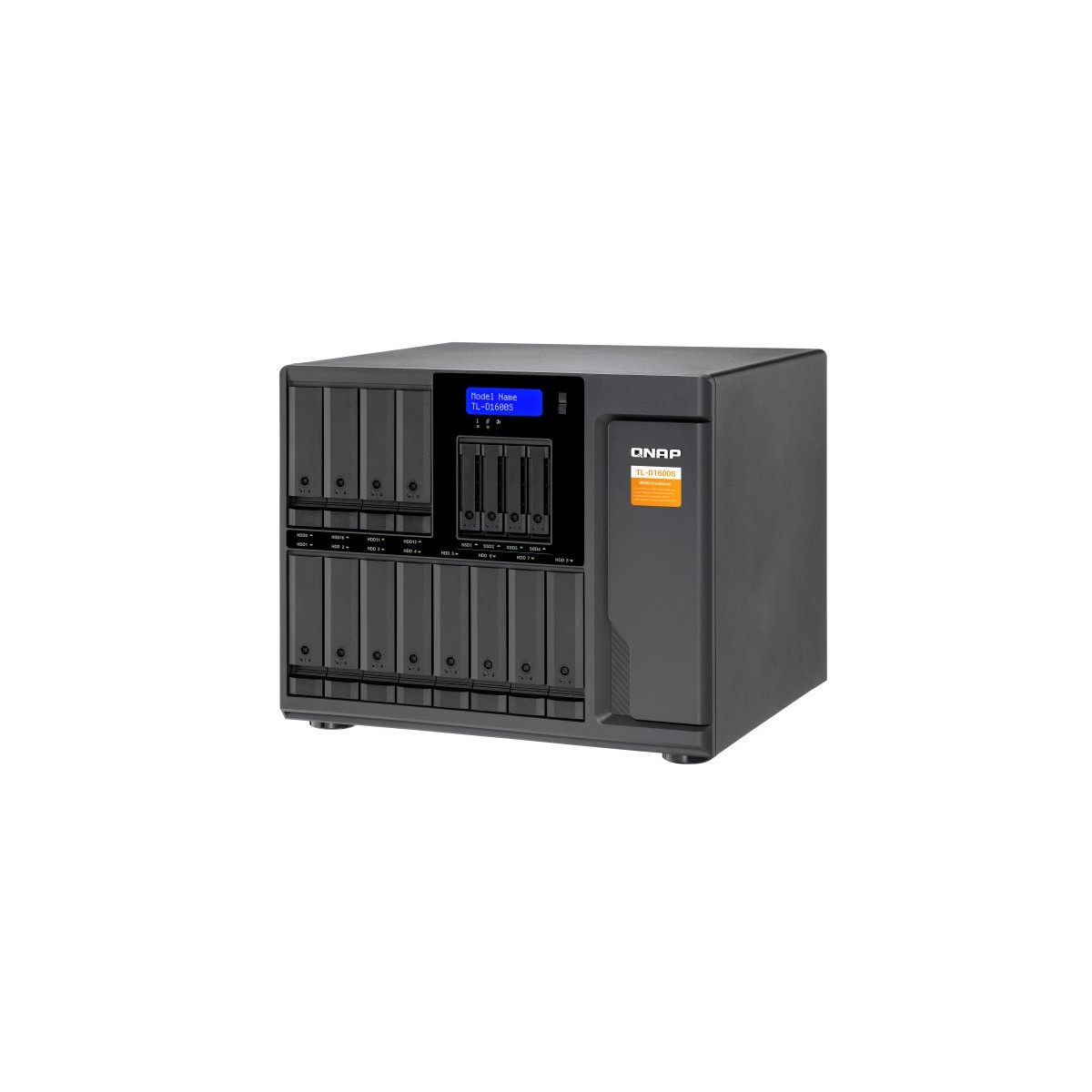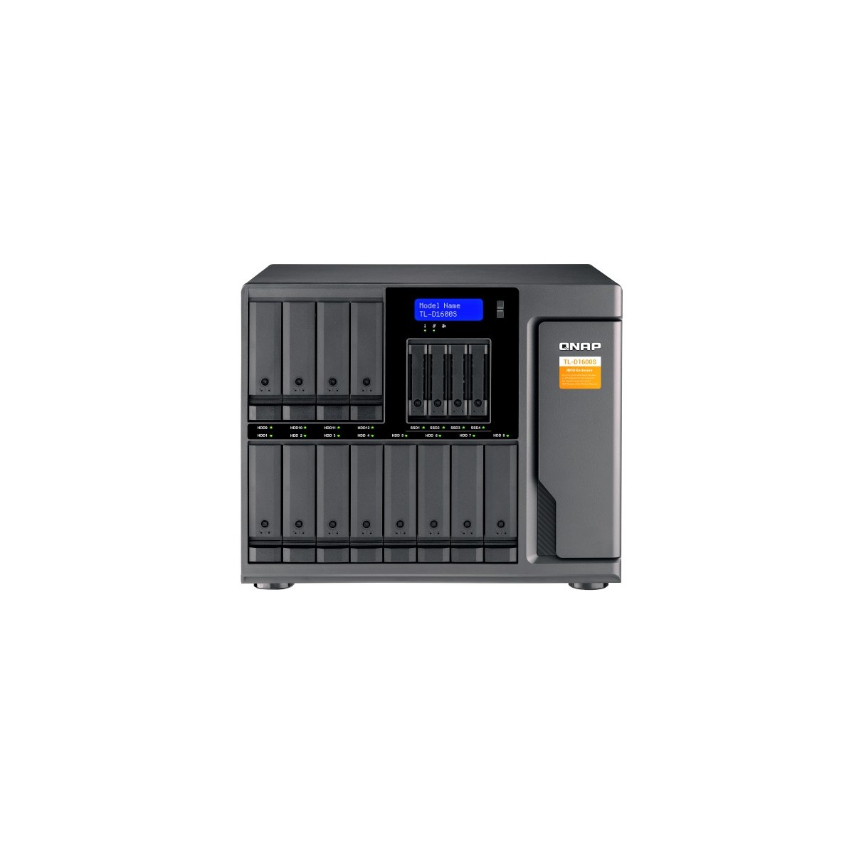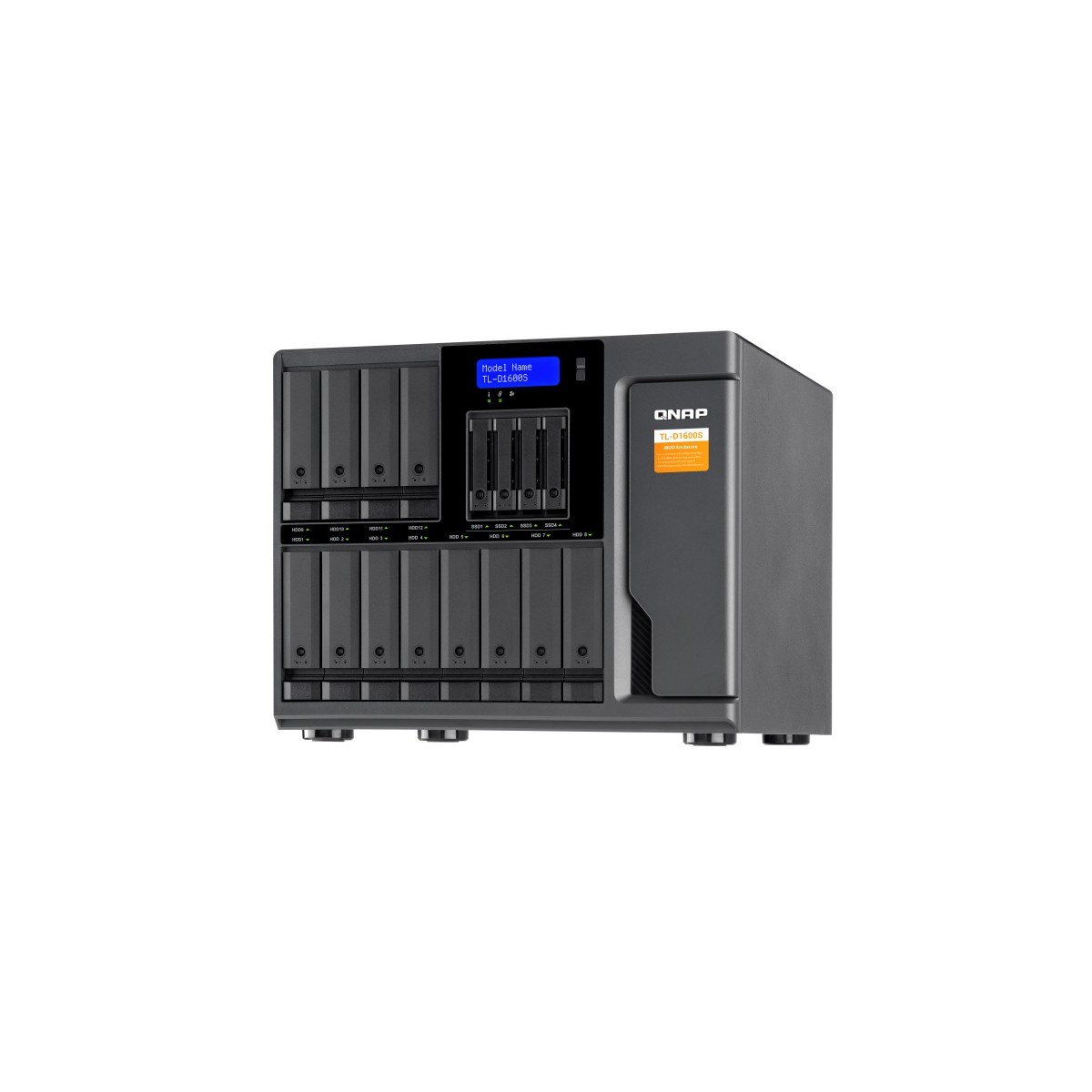 QNAP TL-D1600S. Tipo di prodotto: Enclosure HDD/SSD. numero di dispositivi di archivio supportati: 16, Dimensione del dispositivo di archiviazione: 2.5/3.5", Interfacce dell'unità di archiviazione supportate: Seriale ATA II, Serial ATA III. Velocità di trasferimento dati: 6 Gbit/s. Hot-swap. Tipo di display: LCD, Colore del prodotto: Nero, Grigio