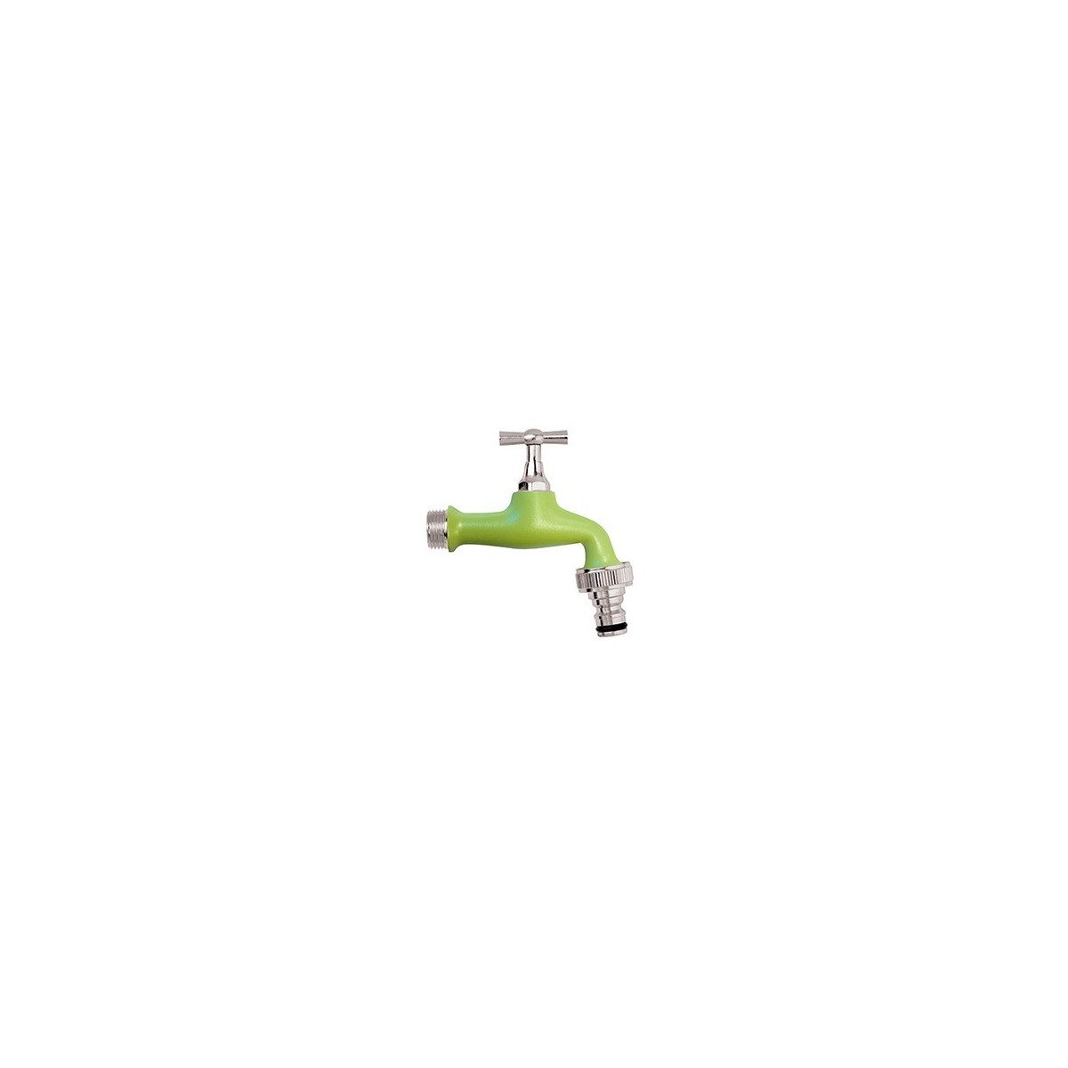 Rubinetto da esterno verniciato a polveri poliestere adatto al contatto con acqua potabile. Garantito ad una pressione di esercizio di 10 bar. In blister.