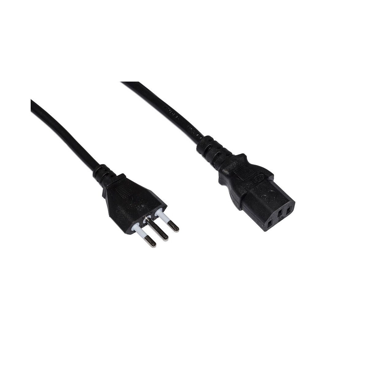 Normali cavi di alimentazione dalla presa a muro al dispositivo, ad esempio per computer, stampanti, PC e altre periferiche. Il cavo ha tutte le certificazioni necessarie per poter essere usato in ogni tipo di ufficio. Metri 1,8. Spina italiana tripolare 10A, presa IEC 320 C13 VDE.