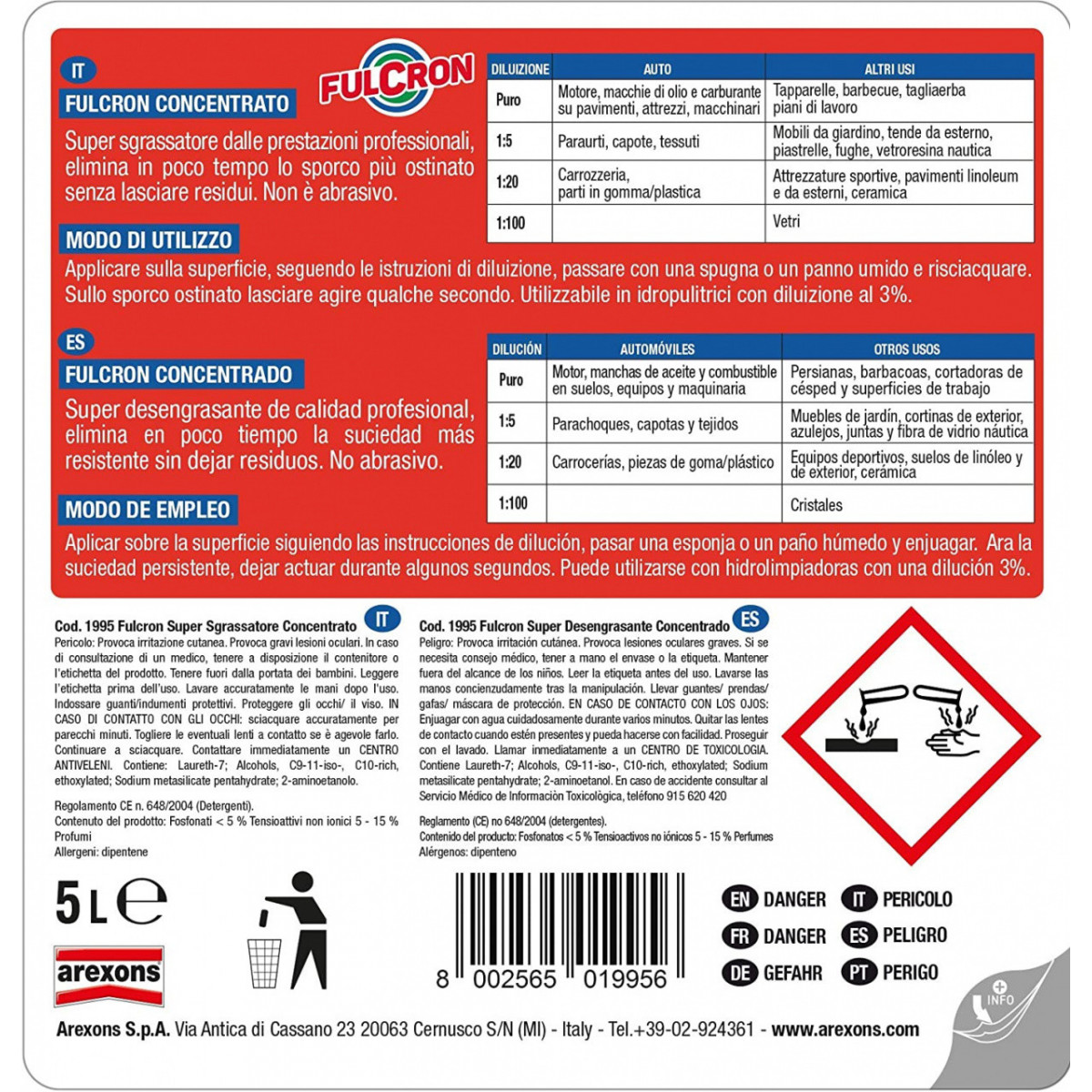 Fulcron 1995 Super Sgrassatore Concentrato Detergente Professionale, 5 Litri