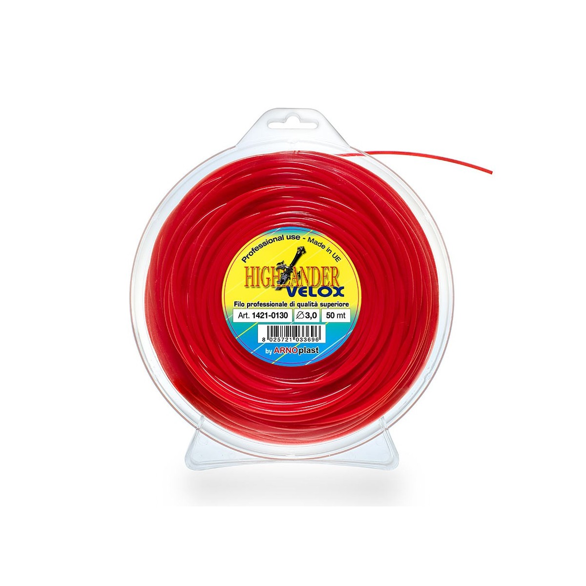 Filo nylon HIGHLANDER VELOX. Filo professionale di qualita' superiore. Offre i seguenti vantaggi : bassa rumorosita', minur consumo di carburante del decespugliatore, maggior elasticita' del prodotto, miglior penetrazione dell'aria grazie alla sua forma aereodinamica con la possibilita' di usare diametri maggiori su macchine di bassa cilindrata.