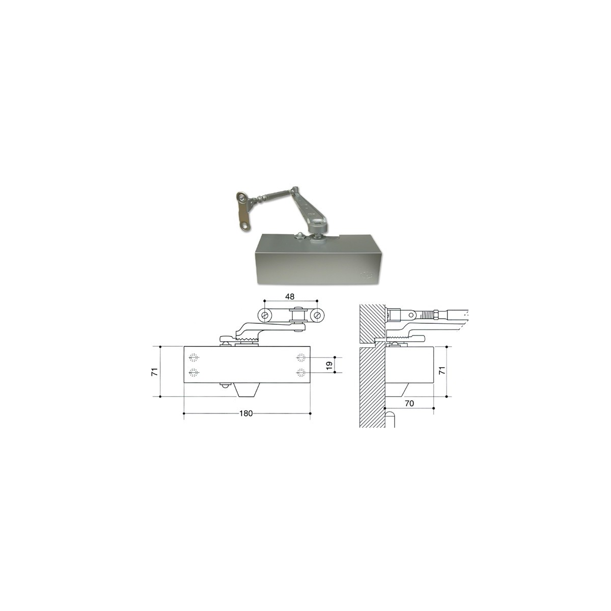 Mab 503 chiudiporta. Aereo, a pignone e cremagliera. Per porte di 1000x2300 mm. circa.