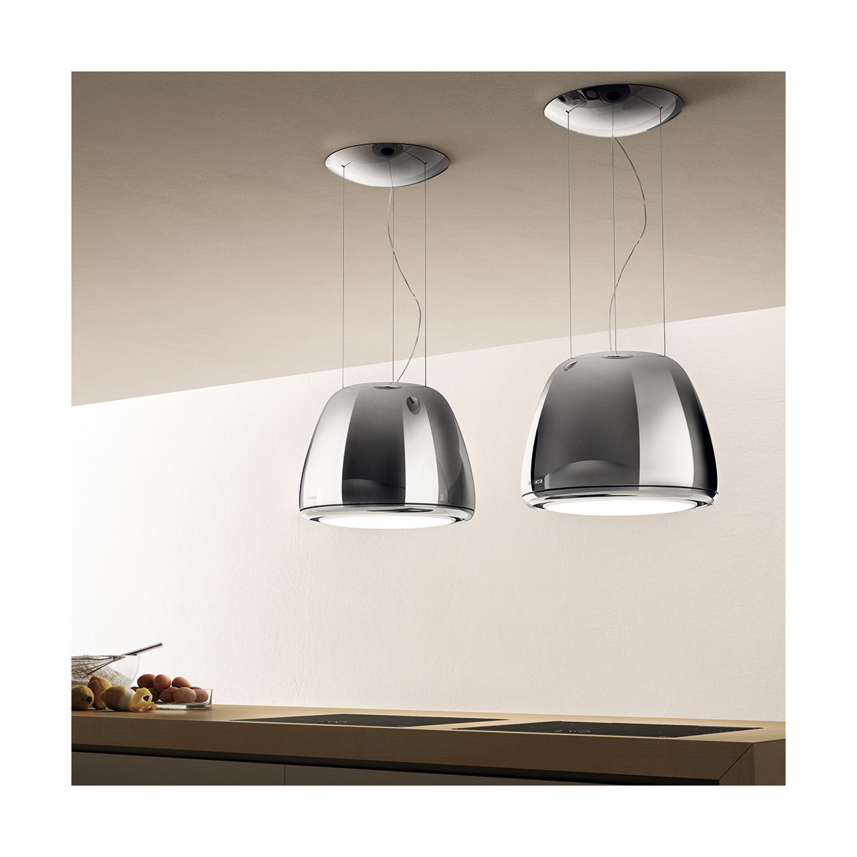 PRF0098364 New Evolution è la nuova edizione di Evolution, la prima linea di cappe lampadario lanciate nel mondo da Elica nel 2005. La nuova gamma altamente performante, di cui fanno parte Édith e Audrey, propone forme e finiture innovative per modelli polifunzionali in grado di garantire qualità dell’aria e luce per la giusta atmosfera di ogni ambiente. Il motore è ad alta efficienza con aspirazione perimetrale e la luce è a LED.Édith, dalla sagoma morbida e tondeggiante è disponibile con finitura in metallo verniciato o in acciaio lucido.