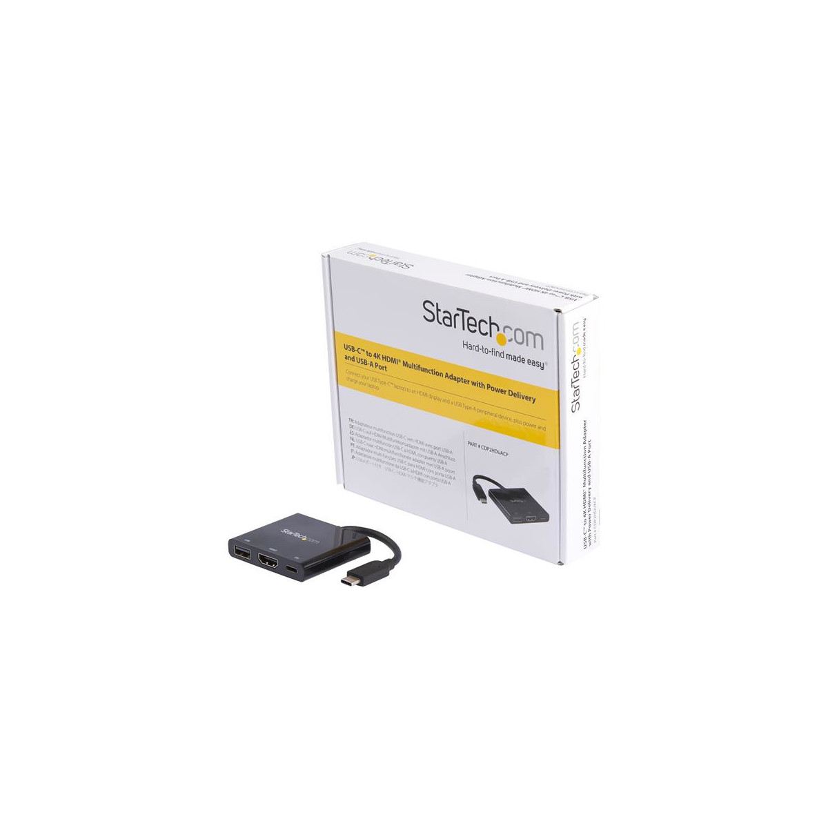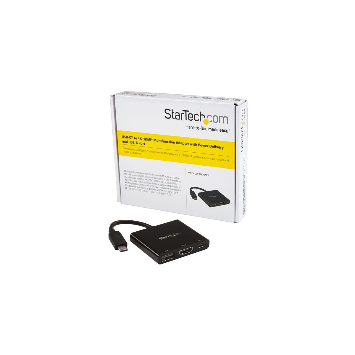 StarTech.com Adattatore multifunzione USB-C a HDMI 4K con fornitura di alimentazione e porta USB-A. Tecnologia di connessione: Cablato, Interfaccia host: USB 3.2 Gen 1 (3.1 Gen 1) Type-C. Colore del prodotto: Nero, Velocità di trasferimento dati: 5 Gbit/s, Risoluzione (digitale massima): 4096 x 2160 Pixel. Tipologia alimentazione: USB, Alimentazione: 60 W. Larghezza: 50 mm, Profondità: 60 mm, Altezza: 11 mm. Larghezza imballo: 146 mm, Profondità imballo: 175 mm, Altezza imballo: 32 mm