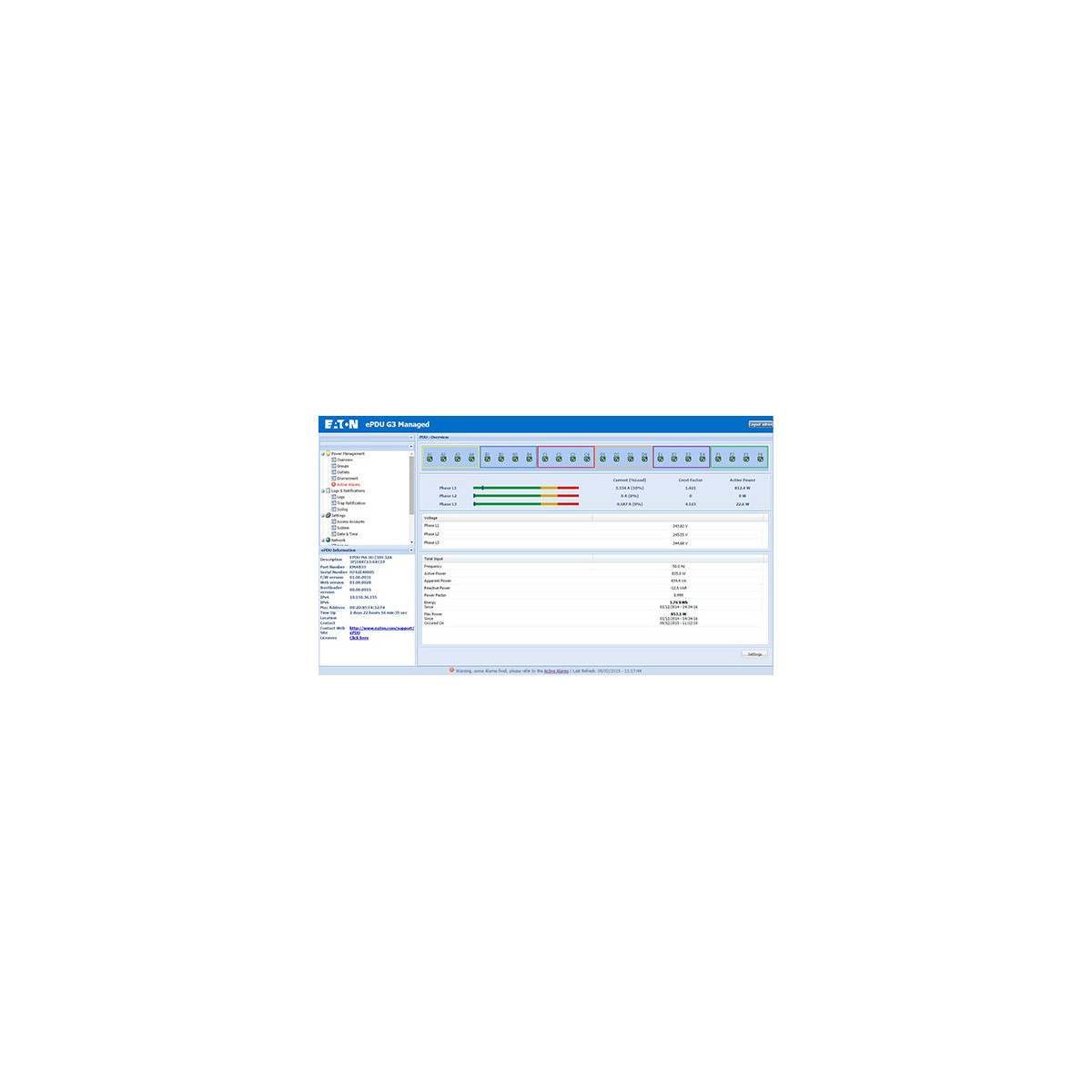 Eaton EMAH28. Tipi di PDU: Gestito, Capacità di rack: 1U, Tipo: Monofase. Quantità prese AC: 8 presa(e) AC, Tipo di uscita AC: Accoppiatore C13, Presa di corrente: Accoppiatore C20. Lunghezza cavo: 3 m, Certificazione: CB, CE, EN 60950-\n1:2006/A11:2009/A1:2010/A12:2011\nEN 61000-6-2:2005\nEN 50581 : 2012, REACH,.... Protocolli di rete supportati: HTTP, HTTPS, SSL, FTP, SMTP, DNS, DHCP, LDAP, RADIUS, Protocolli di gestione: SNMP, Telnet, Firmware aggiornabile tramite: Rete, USB. Voltaggio nominale di entrata: 230 V, Corrente massima: 16 A, Frequenza di ingresso AC: 50 Hz