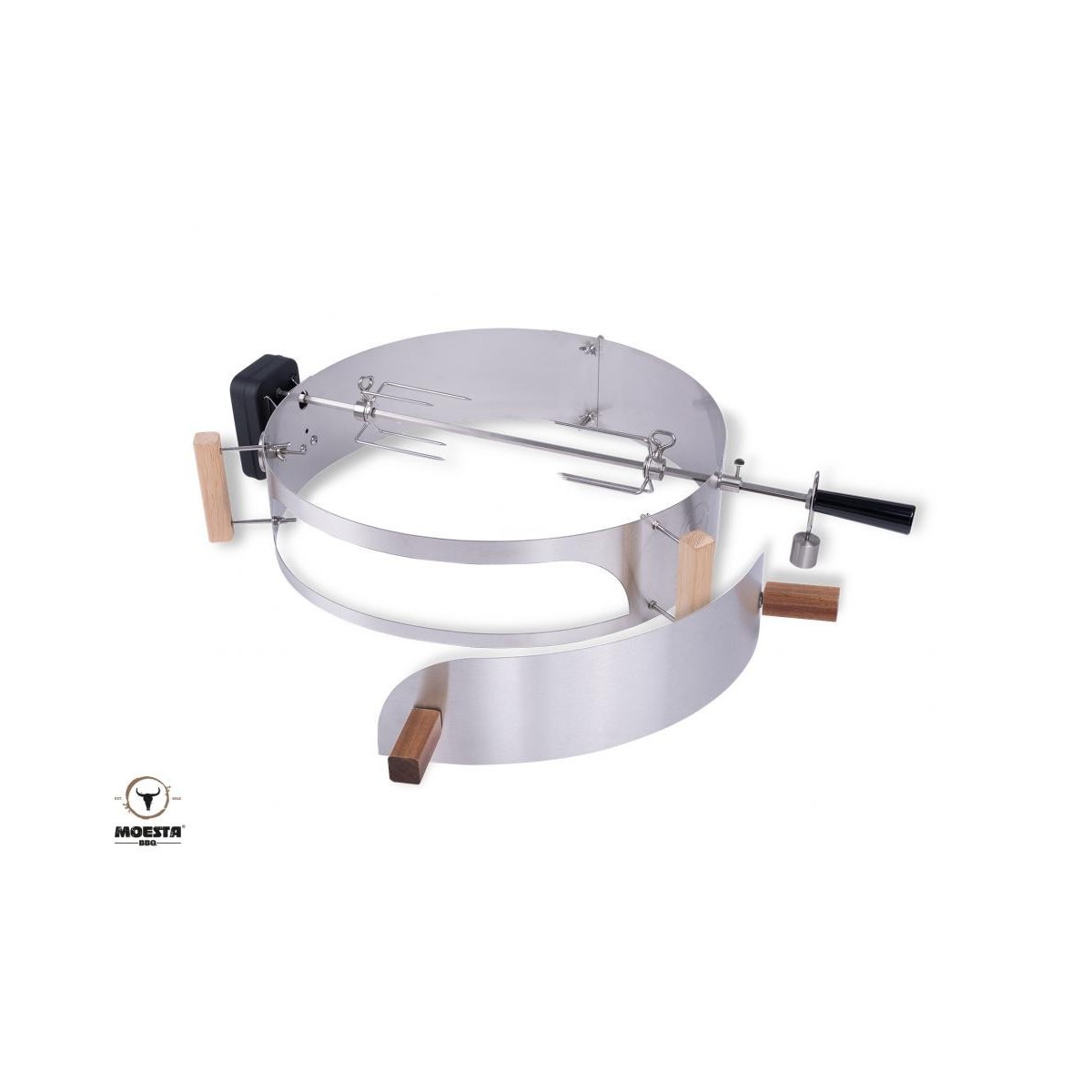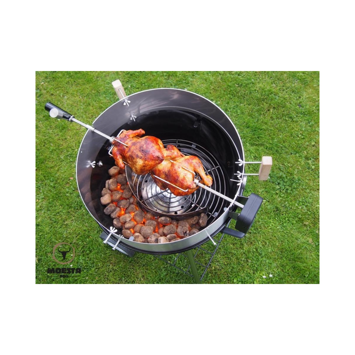 Questo set contiene tutto il necessario per l´utilizzo del girarrosto sul BQQ bollitore, lo rende piu´spazioso il che permette anche l´affumicatura.