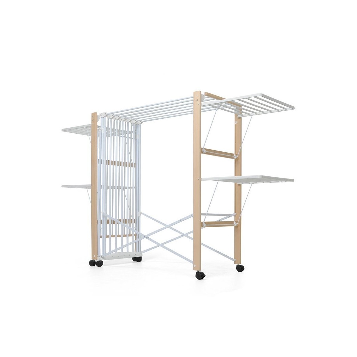 Foppapedretti Allungo - Stendibiancheria Allungabile, Ruote con Freno, Naturale
