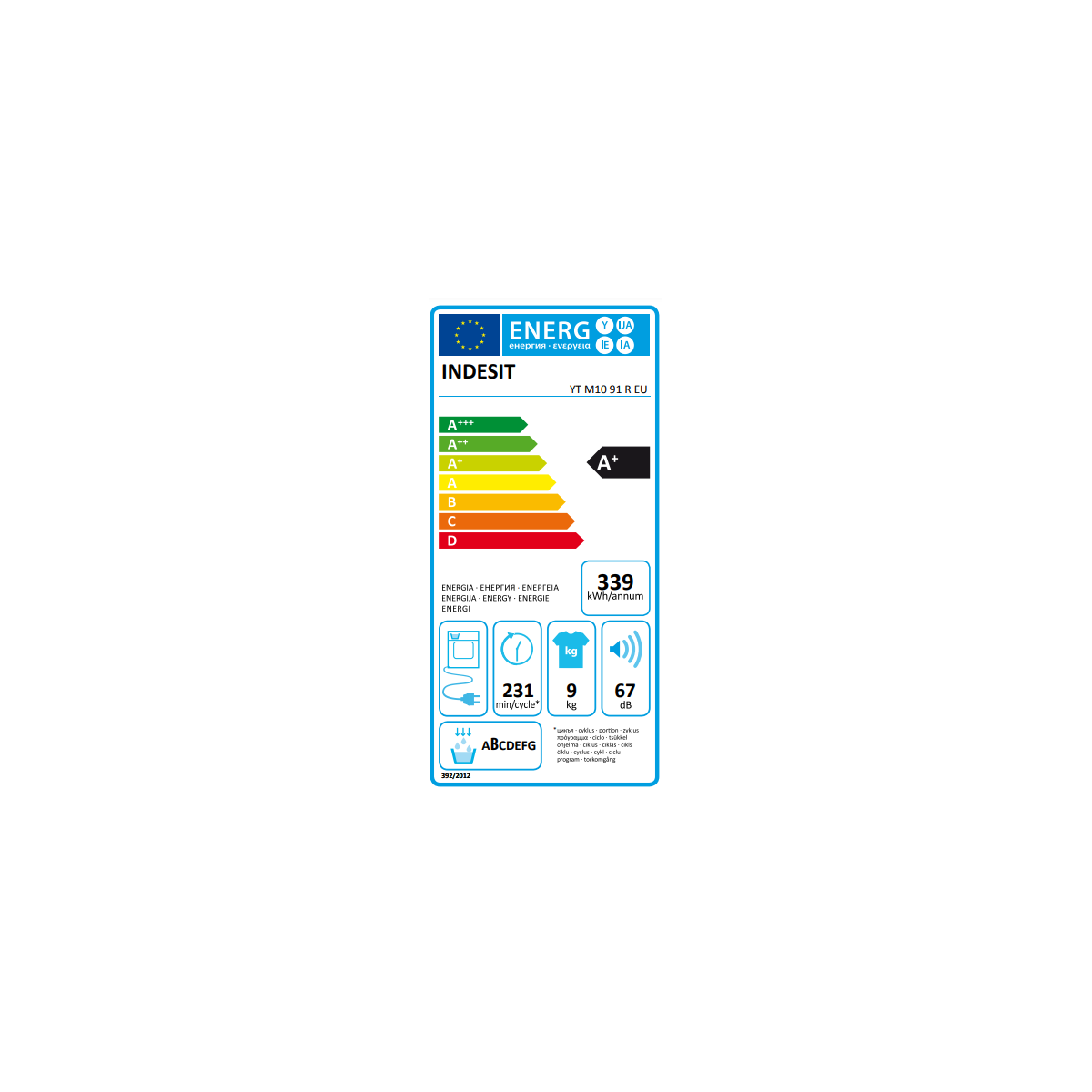 | Scala di efficienza energetica | Da A+++ a D |