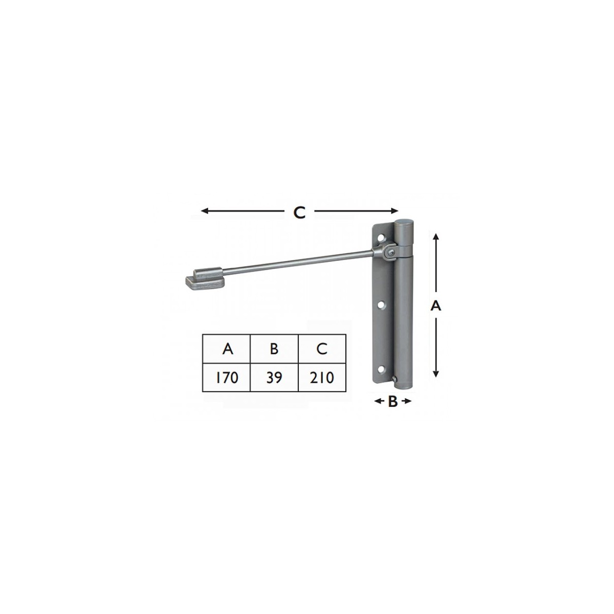 Garantisce la chiusura di porte fino a cm.210 di altezza e cm.90 di larghezza con peso fino a Kg.60.