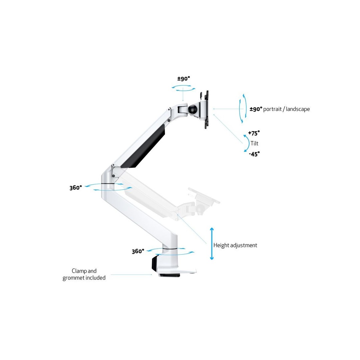 Multibrackets 7150. Montaggio: Morsa, Peso massimo (capacità): 10 kg, Capienza minima dimensioni dello schermo: 38,1 cm (15"), Capienza massima dimensioni dello schermo: 81,3 cm (32"), Compatibilità interfaccia di montaggio (min): 75 x 75 mm, Compatibilità interfaccia di montaggio (max): 100 x 100 mm. Regolazione altezza, Inclinazione: -45 - 75°. Colore del prodotto: Bianco