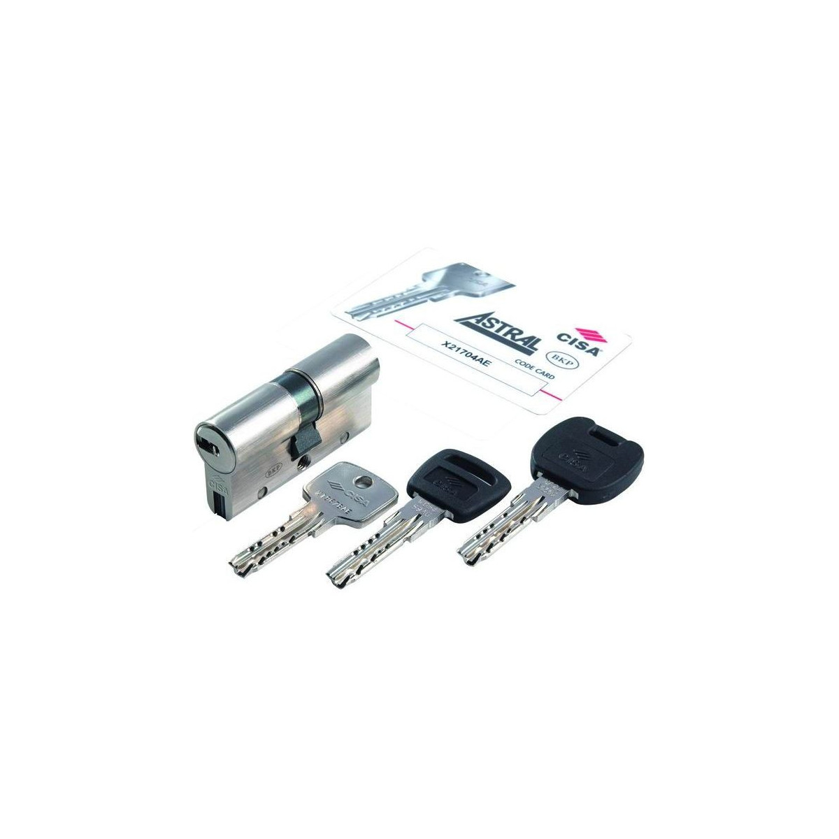 Cilindri cisa astral-sigillo in ottone c/pacco lamellare elevata resistenza al bumping cifratura a 10 perni su 2 file 3 chiavi piatte reversibili code-card per la duplicazione.