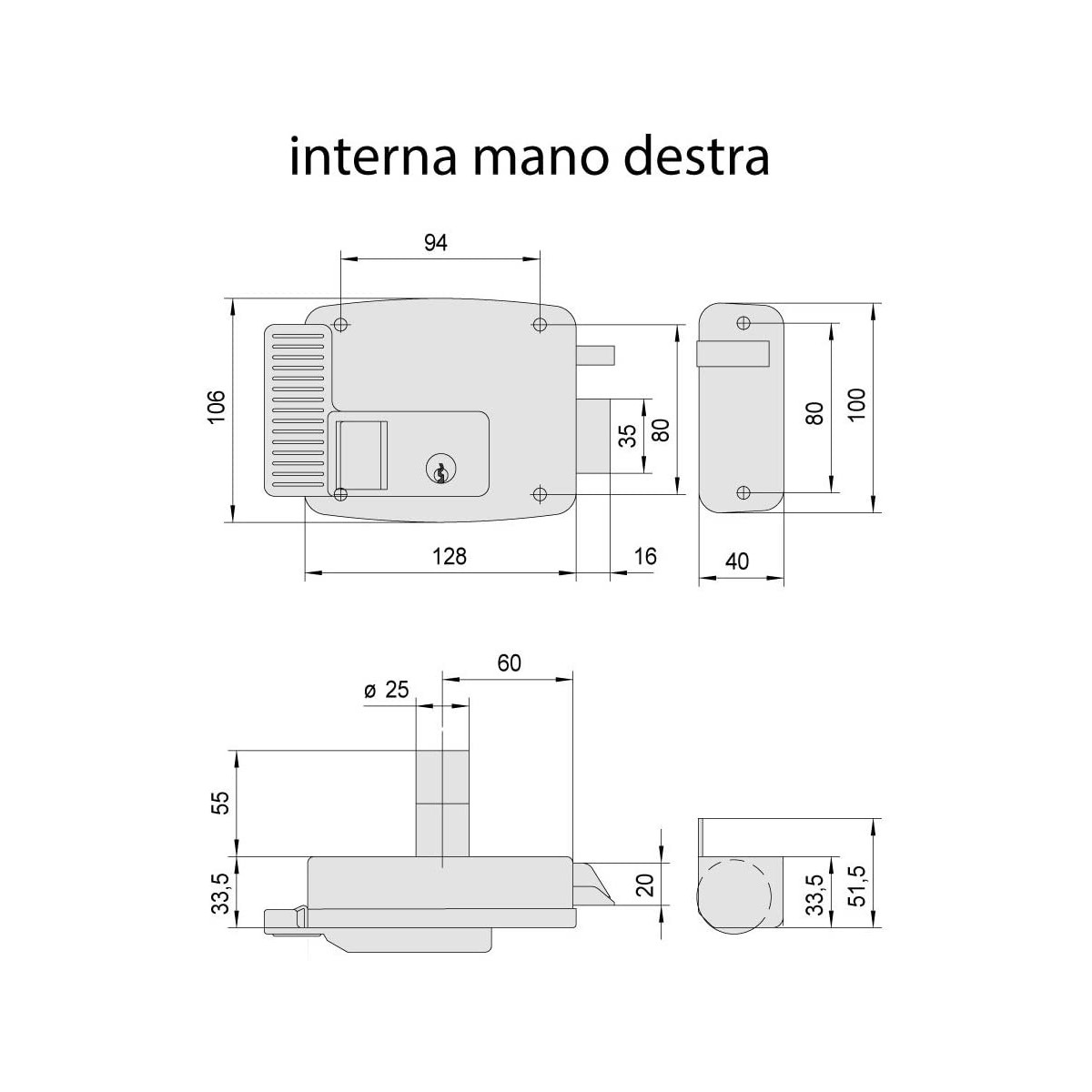 Cisa 11731-60-1 Serratura Elettrica Applicare Cilindro Fisso DX 12 V Zincato Entrata 60