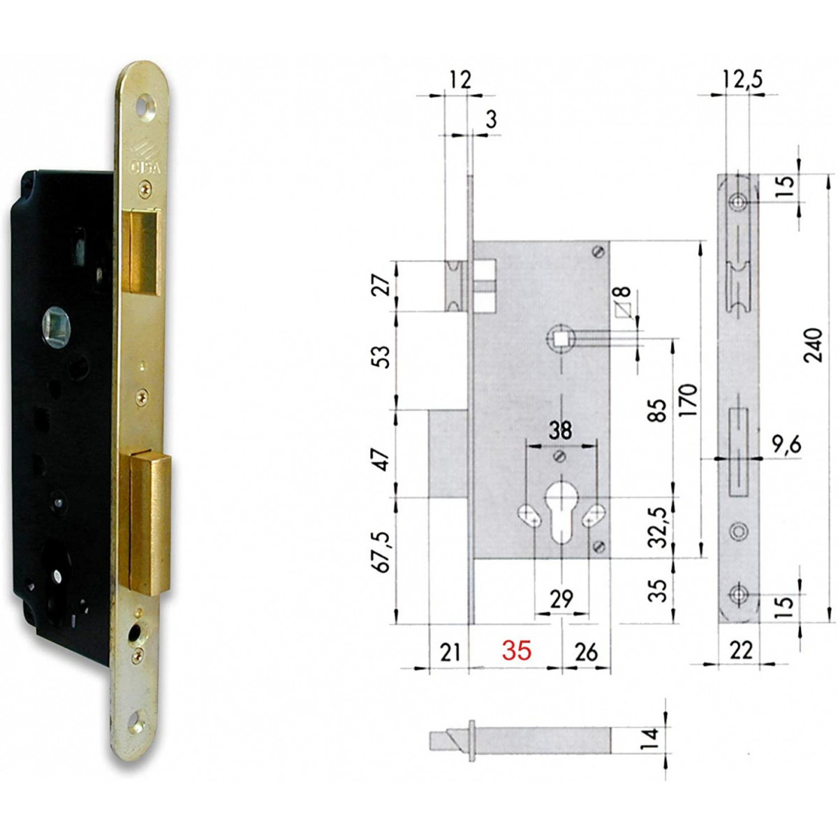 Cisa 5C130 Serratura da infilare per cilindro europeo, catenaccio e scrocco, quadro maniglia, frontale mm.22, bordo tondo. Catenaccio a 2 mandate, scrocco reversibile. Contropiastra in dotazione. Fornita senza cilindro.