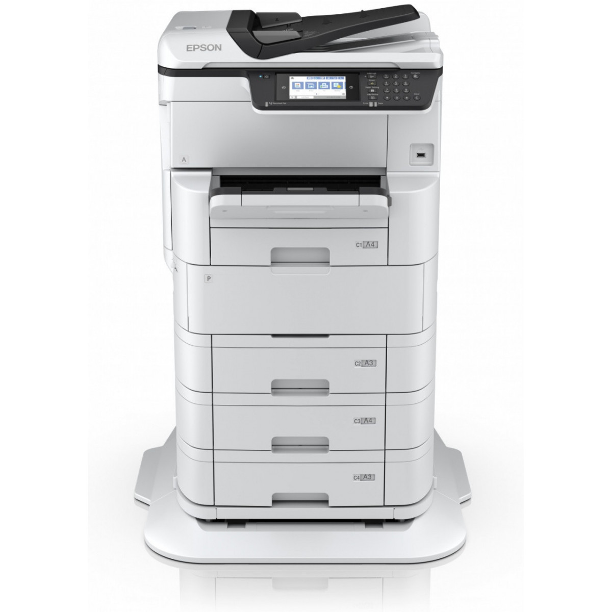 Epson WorkForce Pro WF-C878RD3TWFC. Tecnologia di stampa: Ad inchiostro, Stampa: Stampa a colori, Risoluzione massima: 4800 x 1200 DPI, Velocità di stampa (colore, qualità normale, A4/US Letter): 35 ppm. Copia: Copia a colori, Risoluzione di copia massima: 600 x 1200 DPI. Scansione: Scansione a colori, Risoluzione di scansione ottica: 600 x 600 DPI. Fax: Fax a colori. Massimo formato carta serie ISO A: A3. Wi-Fi. Stampa diretta. Colore del prodotto: Grigio