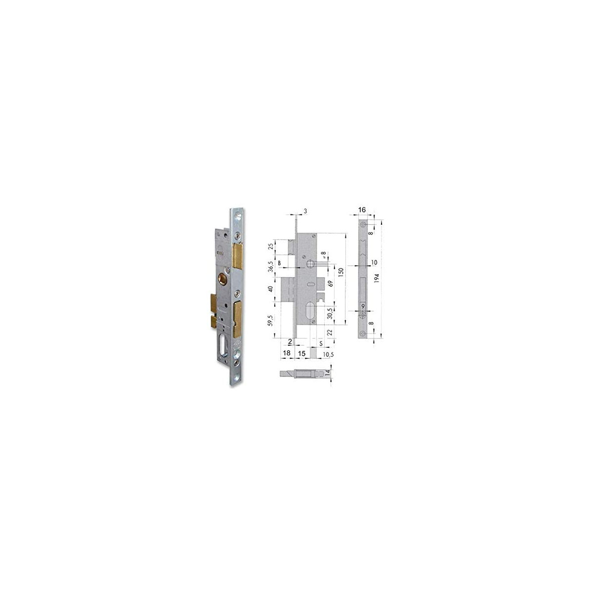 Cisa 44225-18-0 Serratura da Infilare a Cilindro Ovale per Montanti 18 mm