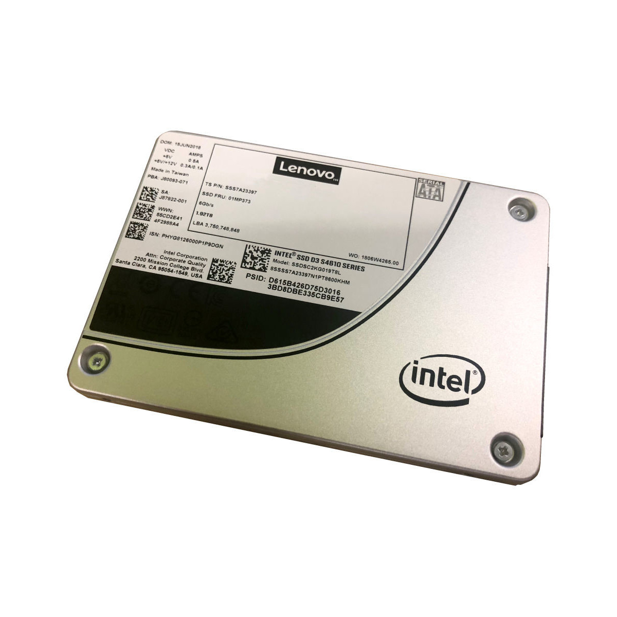 Lenovo 4XB7A13633. Capacità SSD: 240 GB, Fattore di forma dell'unità SSD: 2.5", Velocità di lettura: 560 MB/s, Velocità di scrittura: 320 MB/s, Velocità di trasferimento dati: 6 Gbit/s, Componente per: Server/workstation