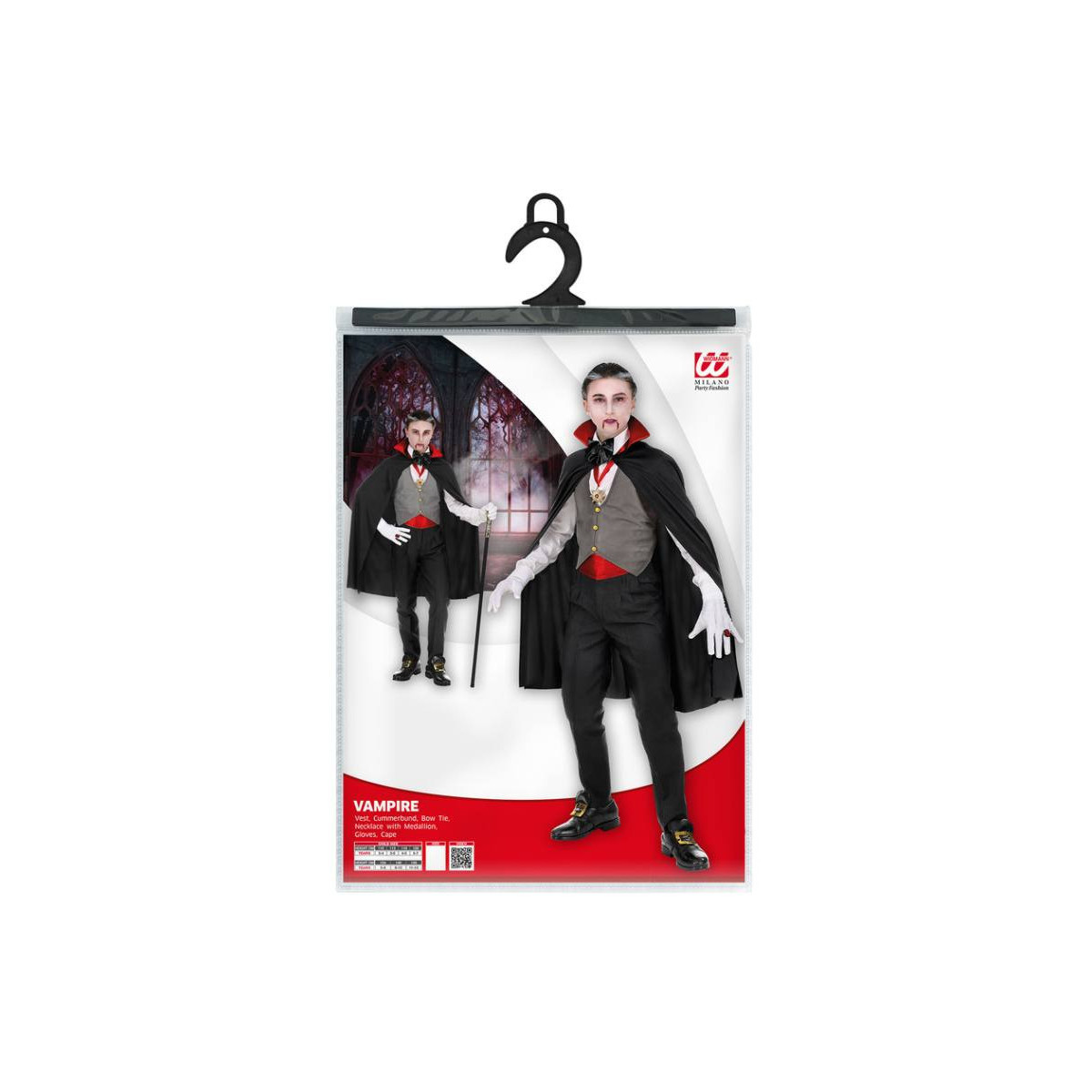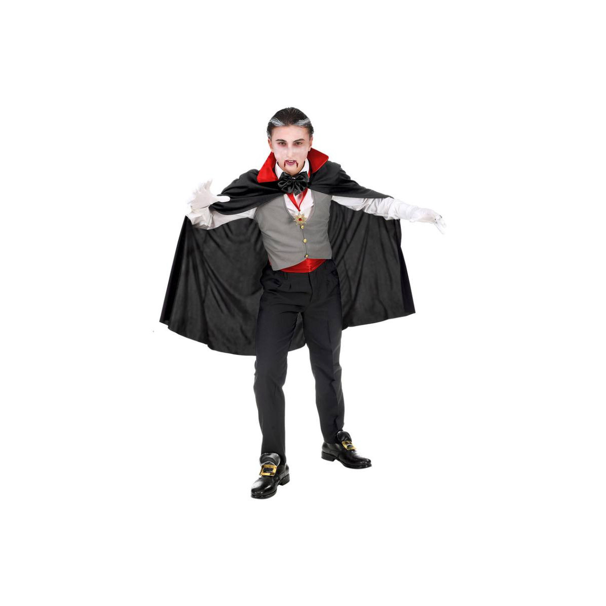 COSTUME VAMPIRO (gilet, fusciacca, farfallino, collana con medaglione, guanti, mantello) (116 cm / 4-5 Years)
