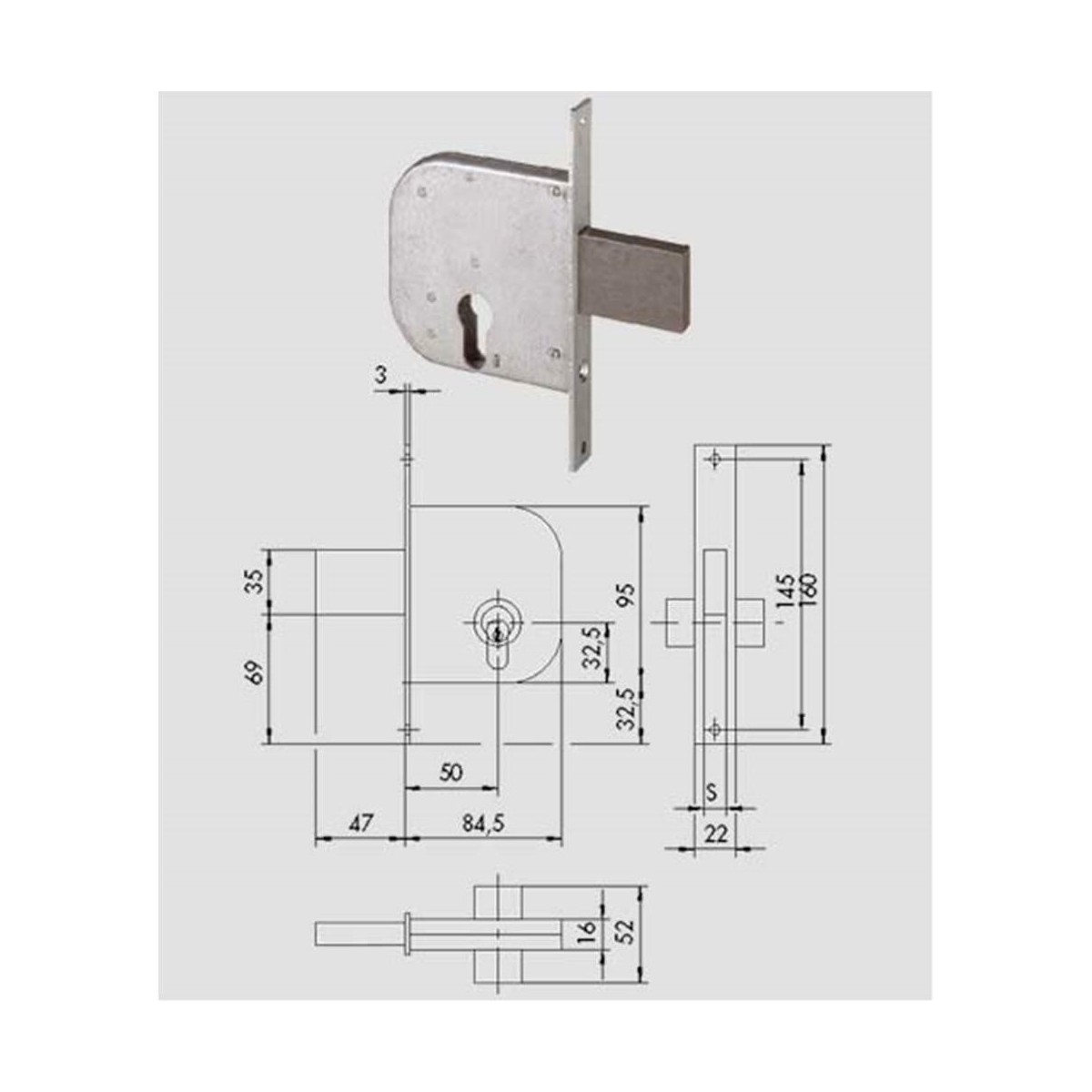 Cisa 42012.50.0 Serratura da infilare per cancelli, per cilindro europeo, scrocco con mandata incorporata, 1 mandate, finitura zincata.