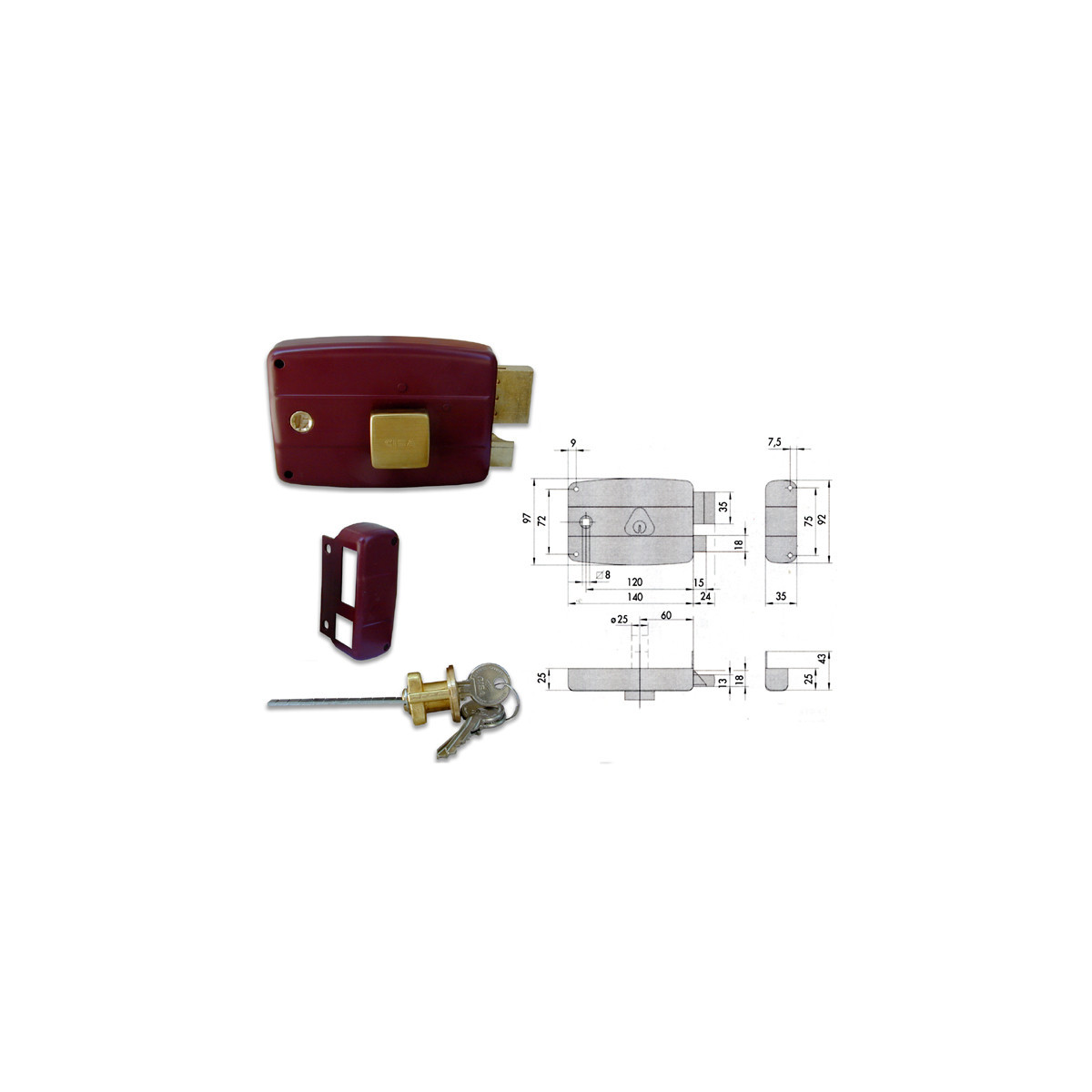 Cisa 50180 Serratura da applicare per portoncino, destra, cilindro esterno staccato, scrocco, 2 mandate, pomolo interno, quadro maniglia, finitura verniciata, fornita con 3 chiavi.
