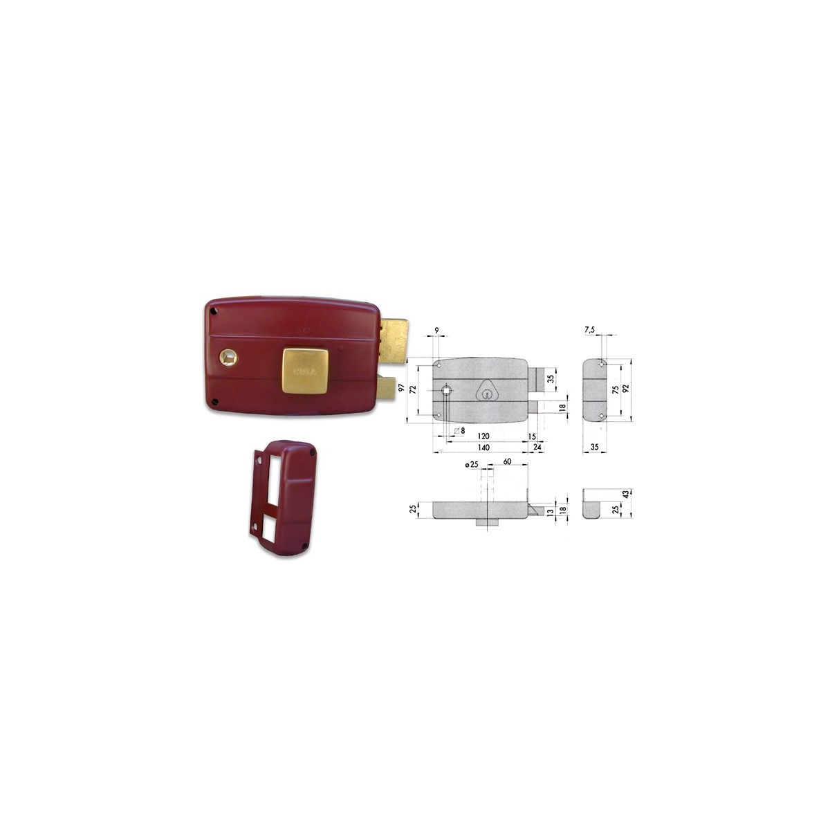 Cisa 50181 Serratura da applicare per portoncino, destra, cilindro esterno fisso, scrocco, 2 mandate, pomolo interno, quadro maniglia, finitura verniciata, fornita con 3 chiavi.
