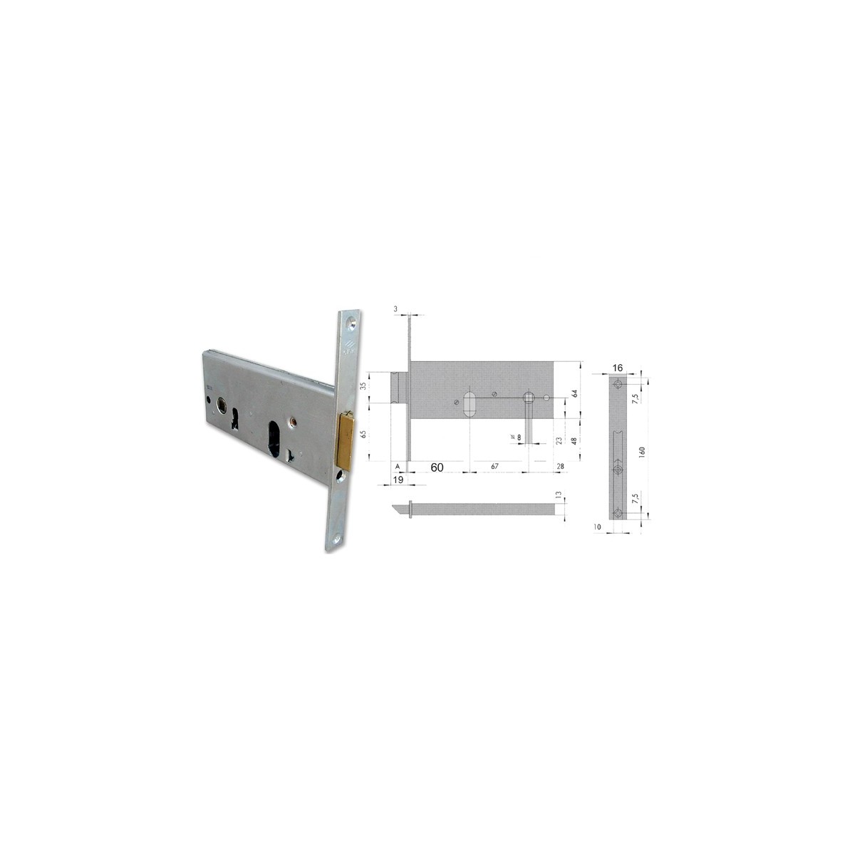 Cisa 44155.70.0 Serratura da infilare per fasce, per cilindro ovale, reversibile, scrocco con mandata incorporata, quadro maniglia. Dimensioni: entrata mm.70.