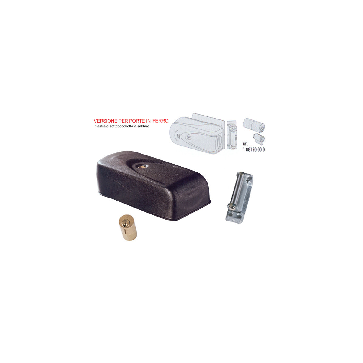 Cisa Elettroserratura ELETTRIKA 1A721 per ferro, reversibile, cilindro fisso, piastra e sottobocchetta a saldare, scudo di protezione in acciaio verniciato. Dimensioni: entrata regolabile da 50 a 80 mm.