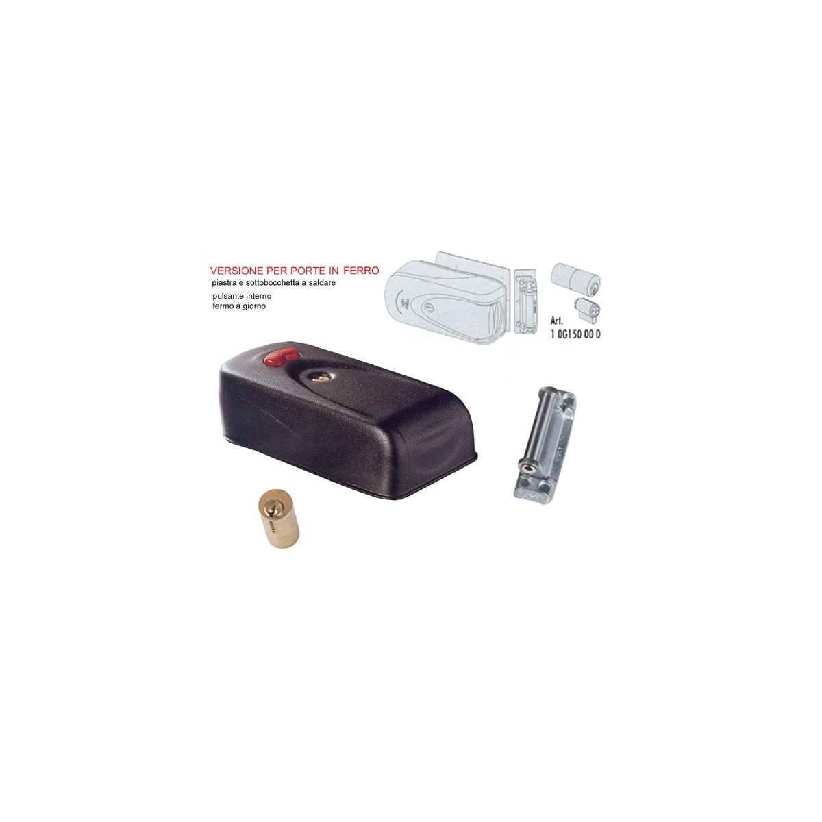 Cisa Elettroserratura ELETTRIKA 1A731 per ferro, reversibile, cilindro fisso, pulsante interno, fermo a giorno, piastra e sottobocchetta a saldare, scudo di protezione in acciaio verniciato. Dimensioni: entrata regolabile da 50 a 80 mm.