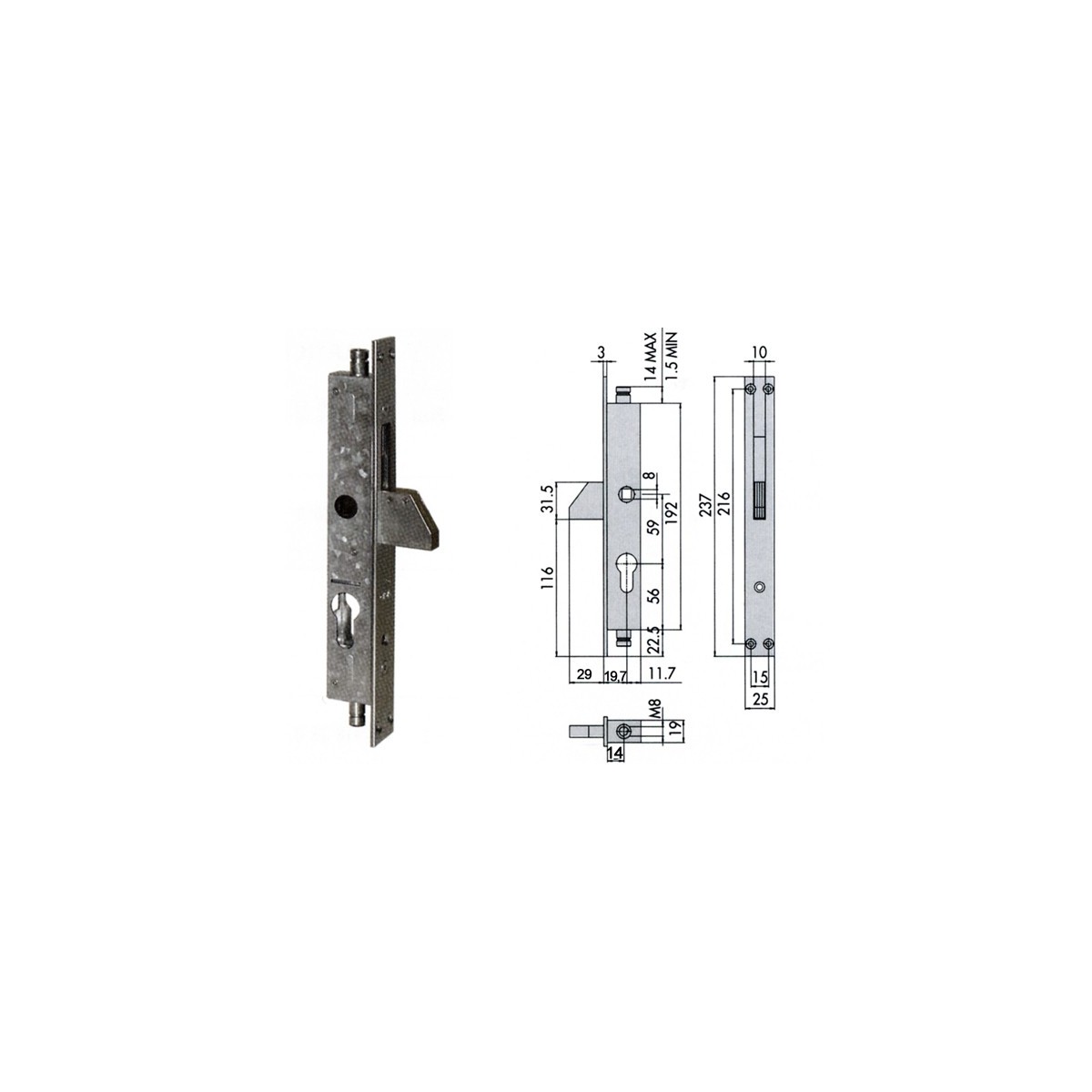 Cisa 46305.19.0 Serratura per persiane blindata per cilindro europeo, catenaccio e aste interne comandate dal quadro maniglia, bloccaggio con cilindro. Dimensioni: entrata mm.19. Fornita senza cilindro (0G305-0E305).