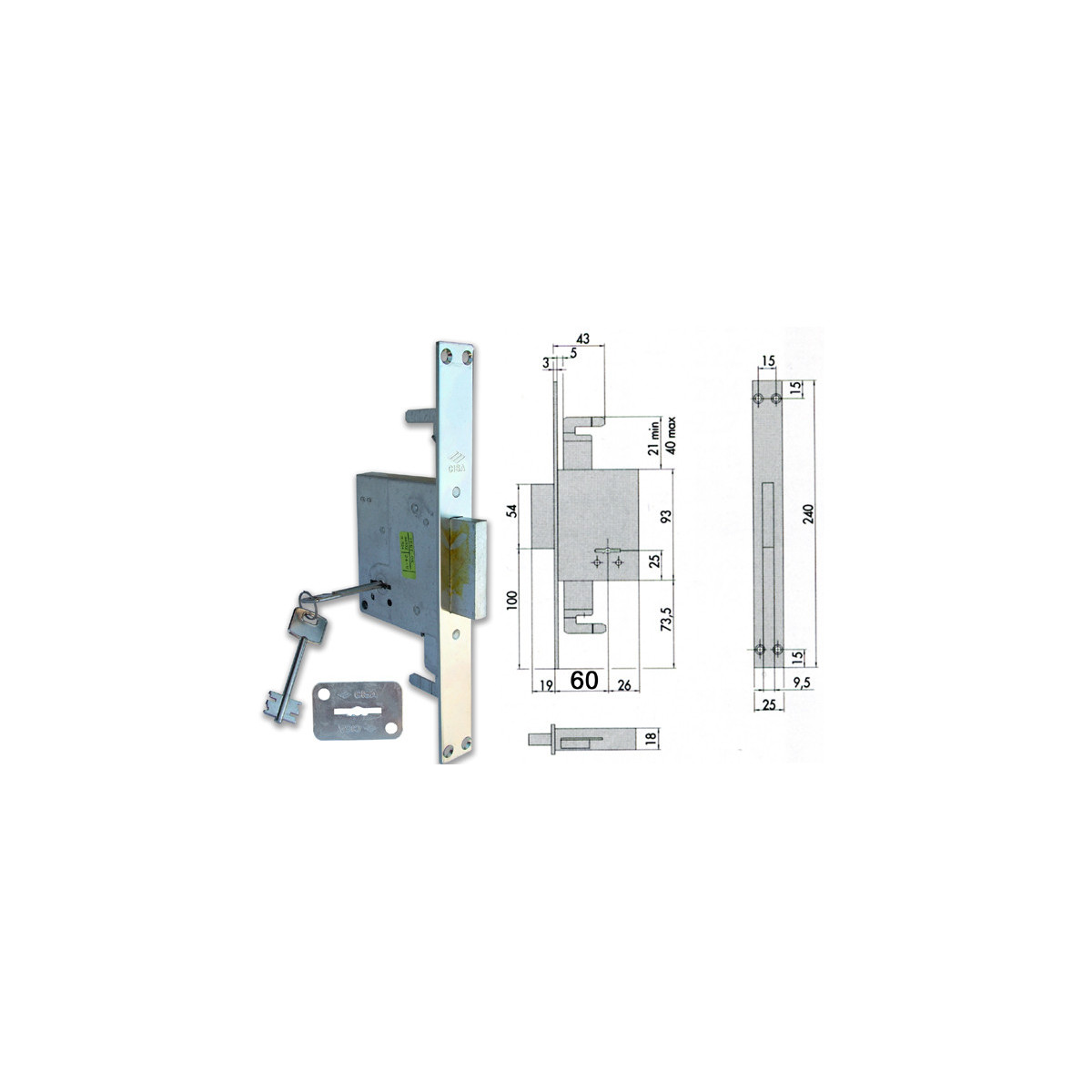 Cisa 57226 Serratura da infilare a doppia mappa, 2 mandate, attacco per aste interne, fornita con 2 chiavi.