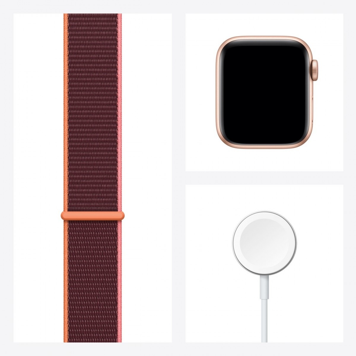 Apple Watch SE GPS + Cellular, 40mm in alluminio oro con cinturino Sport Loop Prugna. Tipo di display: OLED, Risoluzione del display: 324 x 394 Pixel, Touch screen. Memoria flash: 32 GB. Wi-Fi. GPS (satellitare). Impermeabile fino a: 50 m, Materiale della scocca: Alluminio, Colore struttura: Oro, Colore cinturino: Bordeaux, Rosa. Sistema operativo incluso: watchOS 6