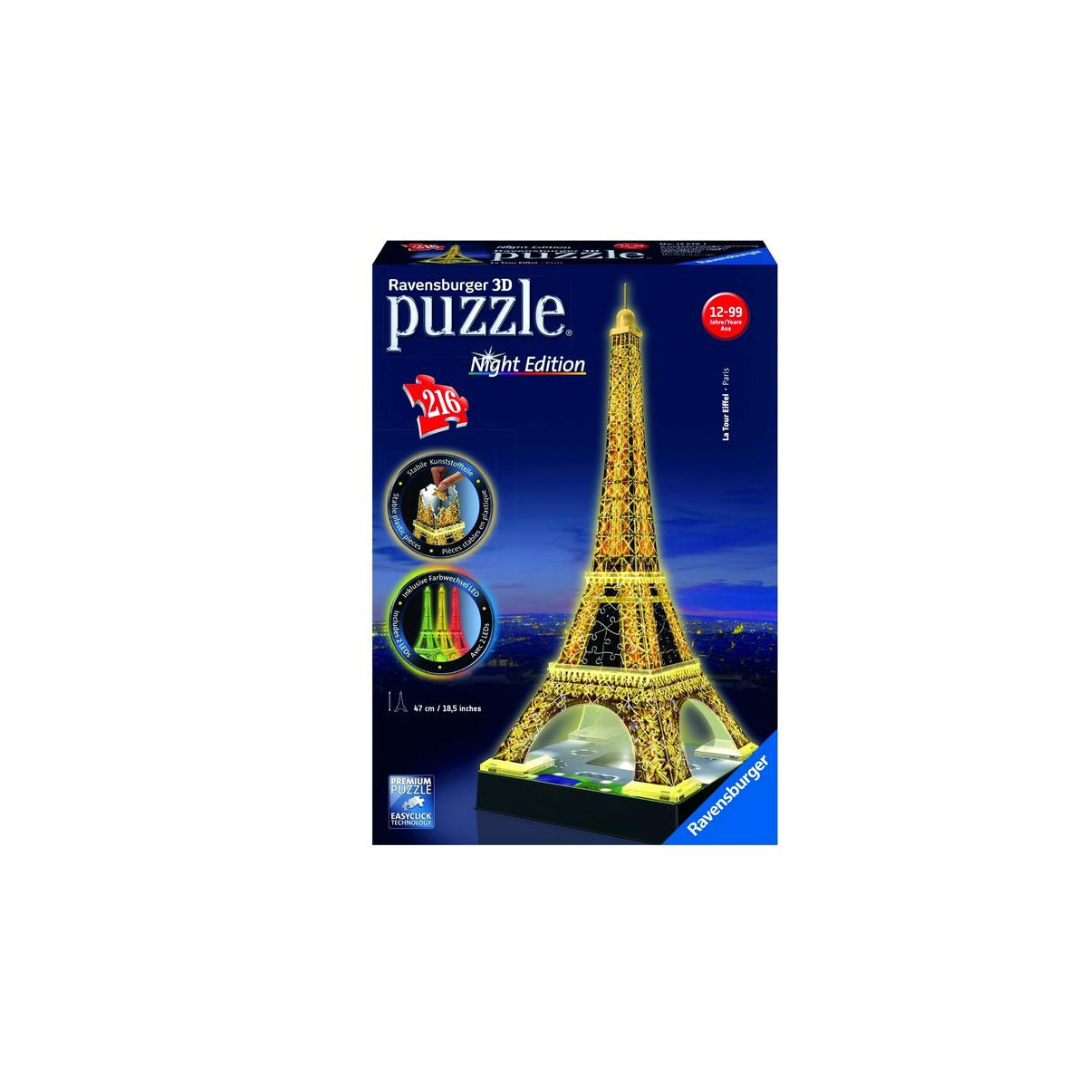 Ravensburger 12579 - 3D Puzzle Building, Torre Eiffel, Night Edition, 216 Pezzi
