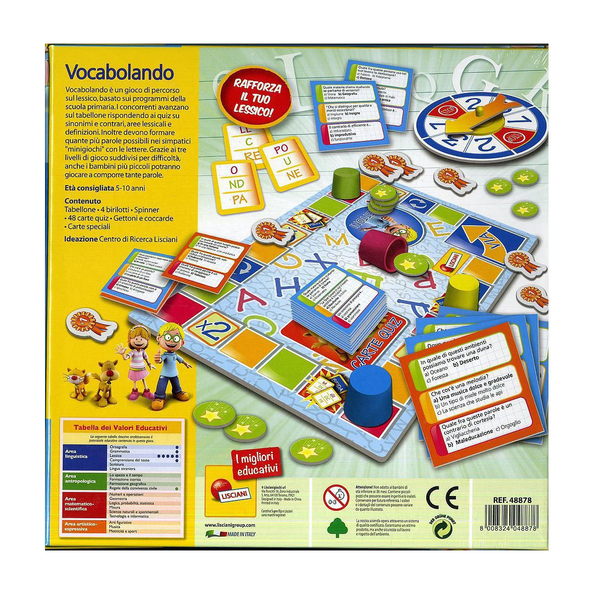 Un divertente gioco a quiz per arricchire il tuo lessico.Vocabolando è un gioco di percorso a quiz pensato per arricchire il lessico dei bambini della scuola primaria. Per vincere bisogna guadagnare le coccarde avanzando sul tabellone e rispondere a domande sulle definizioni, i sinonimi e i contrari e le aree lessicali. Il gioco ha tre livelli di difficoltà, così risulterà divertente anche per i bambini più piccoli.