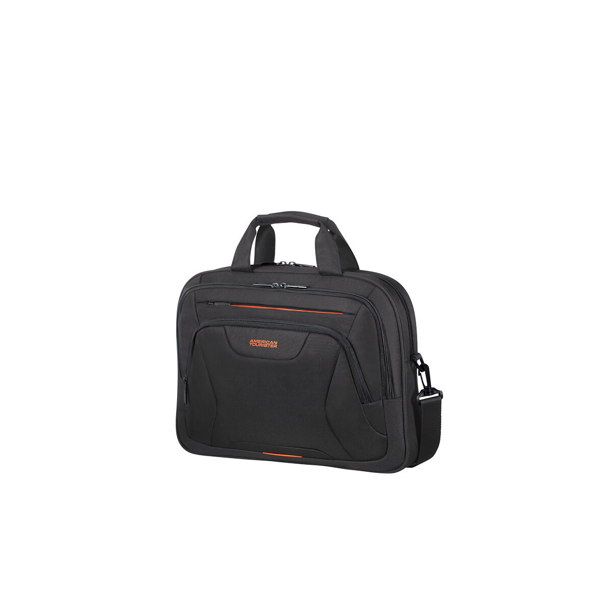 American Tourister At Work. Tipologia custodia: Valigetta ventiquattrore, Capienza massima dimensioni dello schermo: 39,6 cm (15.6"), Maniglia(e) per il trasporto, Tracolla. Peso: 500 g. Colorazione superficie: Monocromatico, Colore del prodotto: Nero, Arancione