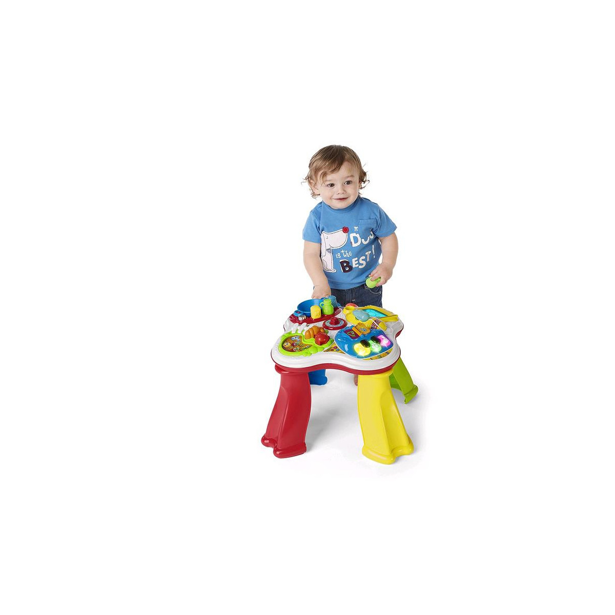 L’unico tavolo bilingue con tantissime attività elettroniche, manuali e oggetti removibili, per stimolare il gioco creativo.