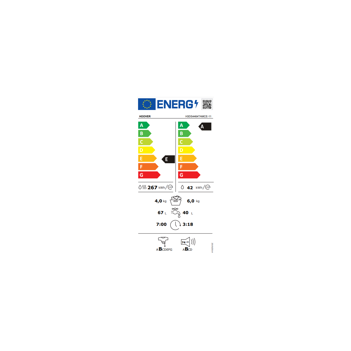 HOOVER LAVASC.H3DS4464TAMCE-11 - Lavasciuga a Carica Frontale, 6/4 Kg,1400 Giri, Bianco, Classe E