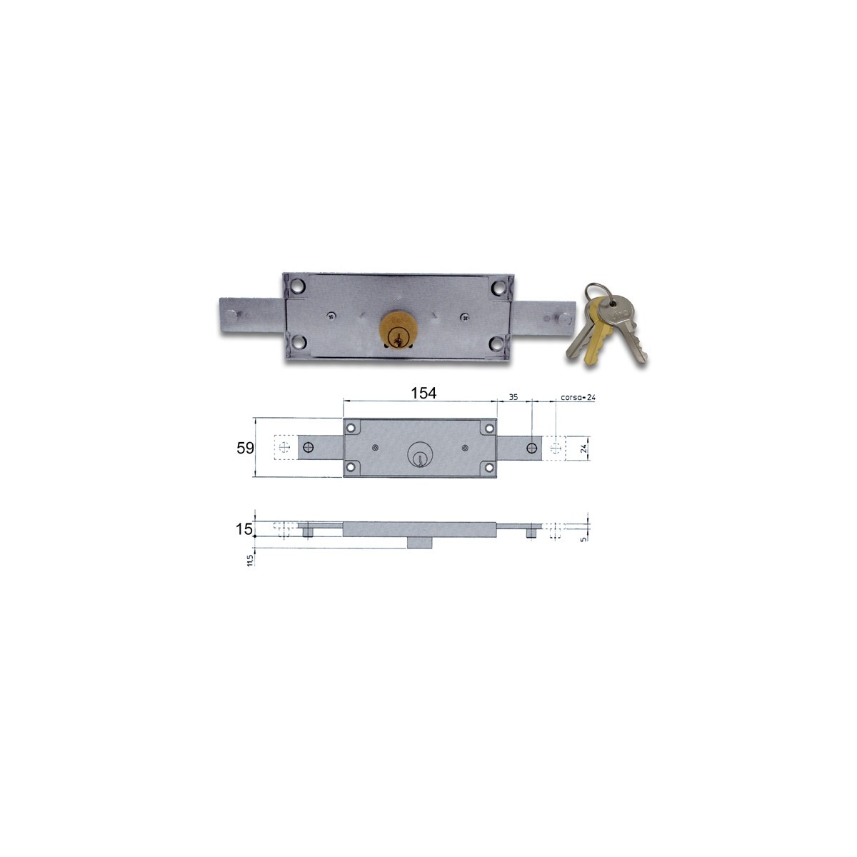 Viro serie 8200 serratura per serranda. Finitura zincata. Chiavi n 3 in dotazione, 2 esterne piu' 1 interna. Cilindro in ottone, catenaccio in acciaio composto da due lamine di 2,5 mm. ciascuna.
