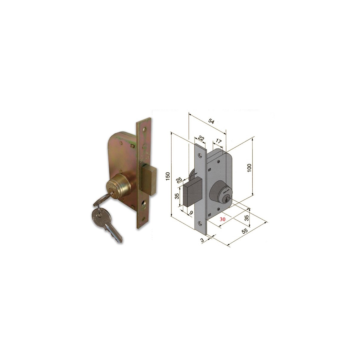 Welka 066.30.00.0 Serratura per cancelli e porte in ferro, 2 mandate, cilindro fisso, fornita con 3 chiavi. Dimensioni: frontale mm.H150xL22, scatola mm.H100xL55xP17, entrata mm.30.