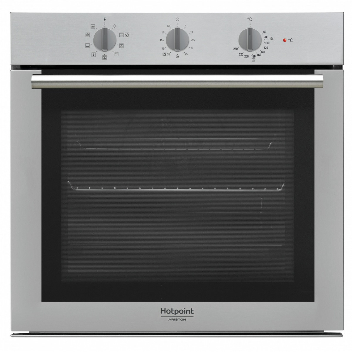 Hotpoint FA4 834 H IX HA. Dimensione del forno: Media, Tipo di forno: Forno elettrico, Capacità interna forno totale: 71 L. Posizionamento dell'apparecchio: Da incasso, Colore del prodotto: Acciaio inossidabile, Tipo di controllo: Manopola. Tipo di timer: Meccanico. Classe efficienza energetica: A, Consumo energetico (convenzionale): 0,99 kWh, Consumo energetico (convezione forzata): 0,81 kWh. Larghezza del compartimento: 56 cm, Profondità del compartimento: 55 cm, Larghezza: 595 mm