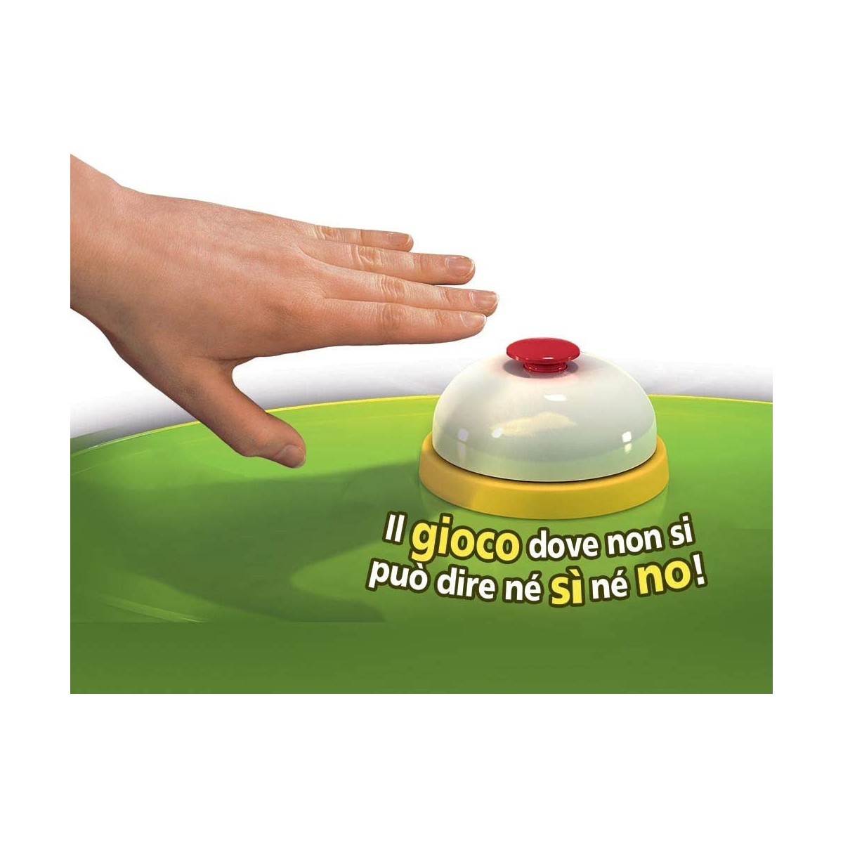 Estrai una carta e fai le domande al tuo avversario seguendo l’ordine indicato. Se il tuo avversario risponde ad una domanda con "Si" o "No", il giocatore più rapido a suonare il campanello potrà far avanzare il suo segnalino di una casella. Il giocatore che raggiunge per primo il centro del tabellone vince.
